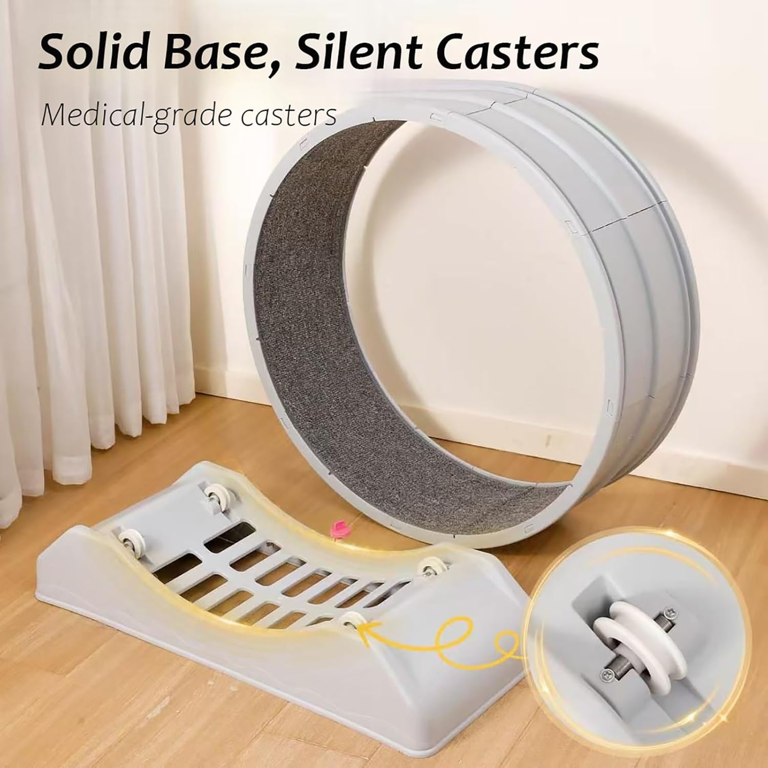 Cat Exercise Wheel for Indoor Cats, Cat Running Treadmill Wheel with Detachable Carpet for Running/Walking/Training, Suitable for Most Cats - Regular exercise is an important part of a cat's well-being. This cat wheel is designed for indoor cats, providing them with a safe place to release energy, run, jump and stay activated. Cats can use the wheel multiple times a day to reduce boredom, and they can entertain themselves when their parents are busy at work. Product Features: 1. Minimal gap between the base and the wheels, ensuring the safety of your cat's paws. 2. Replaceable thickened scratching runway mat for easy removal and washing. 3. Quiet wheels ensure low noise while your cat runs. 4. Safety lock allows you to control the treadmill's on/off switch, ensuring a regular workout for your cat. 5. Snap-on design for easy installation. Product Specifications: Name: Cat Treadmill Color: Gray Material: PP material Suitable for: Cats of all ages Applicable Places: Living room, study room, restaurant, cat family, cat room, cat house, cat cafe, pet shop Dimensions: 80x36x86CM Weight: 5.4kg Product Packaging: 1 x Cat Exercise Wheel Kit