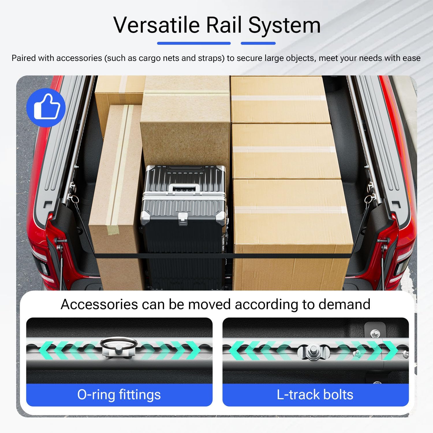 Fitment: Our side bed rails compatible with 2019 2020 2021 2022 2023 2024 2025 Dodge Ram 1500 truck bed rail system is designed according to the original model. NOTE: The truck bed rail system is only compatible with 5.7FT short bed. The tailgate trail rail system is NOT compatible with Limited/Limited Longhorn/Tungsten models. Please check your vehicle model carefully before placing an order. High-quality Material: Our trail rail system compatible with Dodge Ram tie down rail and tailgate bed rail are made of aluminium alloy material, which is super sturdy and long-lasting. It also has good rust-resistant and can be used in a variety of harsh environments. Function: The side rail replacement for Dodge Ram 1500 truck bed rail system features adjustable joints and detachable rail rings for easy management of truck bed space so you could use every corner of the truck. The rail system is a great tool for managing truck space. The latch and screw we provide can slide and lock at multiple preset positions to achieve customized cargo loading. Installation Details: It is not difficult to install the rail system compatible with Dodge Ram trail rail and tie down rail. It needs no professional tools. The whole process is easy. You could refer to the installation instructions on the product homepage or the installation steps in the manual for installation. Easy to Clean: The truck side bed rail replacement for 2019 2020 2021 2022 2023 2024 2025 Dodge RAM 1500 tailgate trail rail are both easy to clean and highly water-resistant.