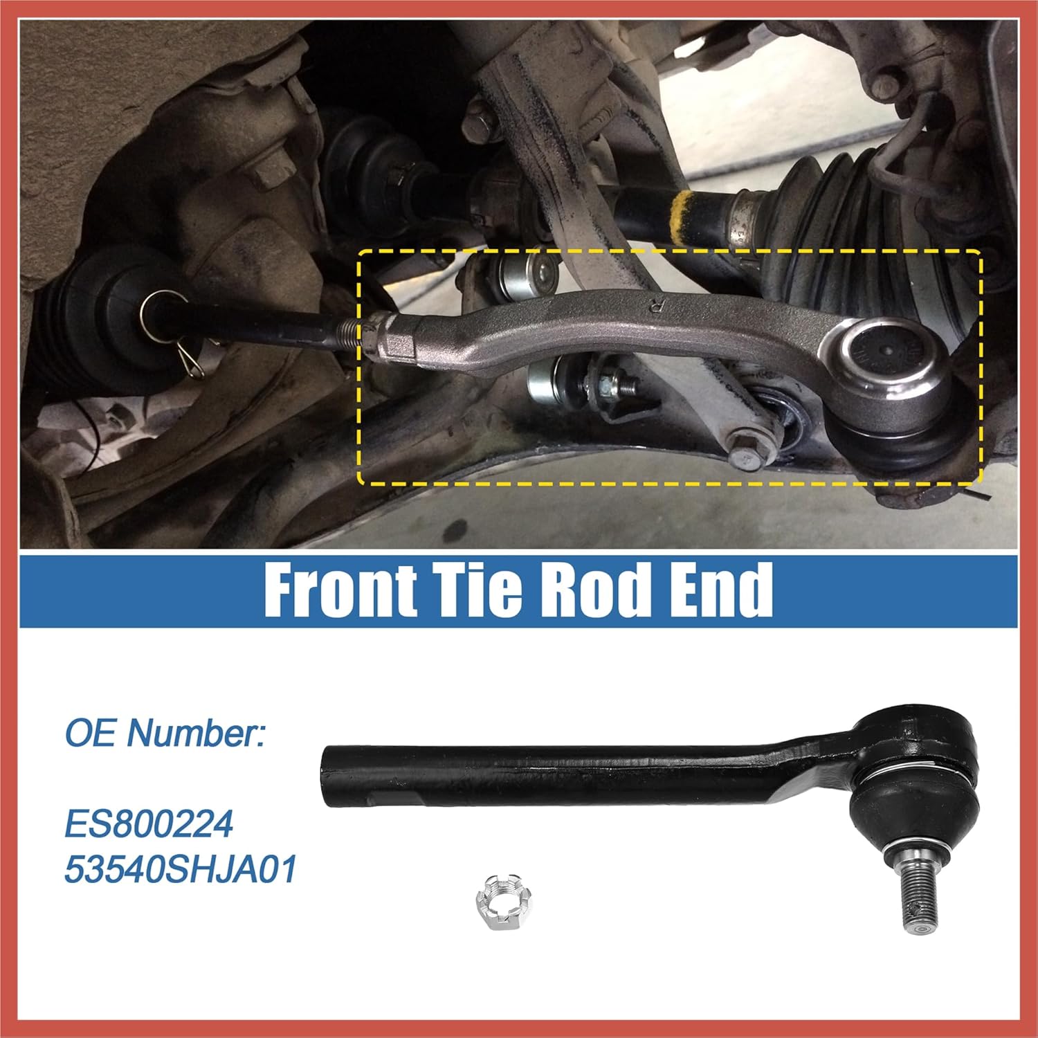 Features:The tie rod ends are made of good material for long-lasting dependability and durability under bad conditions. This resisted abrasion and environmental corrosion.Restores like new steering and handling.Durable surface treatment for anti-rust.This is a non-OEM product, accessory only!Specifications:Material: MetalColor: BlackOE Number: ES800224Other Part Number: 53540SHJA01Placement On Vehicle: Front, Left, RightThread Size: M12x1.25Mounting Hole Diameter: 12.5mm / 0.49"(D)Dimension: 22.5x8.7x4.5cm / 8.86"x3.43"x1.77"(L*W*H)Fitment: for Honda Odyssey 2005-2009 Not for Touring Modelsfor Honda Odyssey 2010Installation Steps: Loosen the pinch nut and remove the cotter pin.Remove the castle nut and the outer tie rod end.Remove the boot and the inner tie rod end.Replacing a new tie rod and installing it back according to the method of disassembly.Package Includes:2 x Front Outer Tie Rod End Links