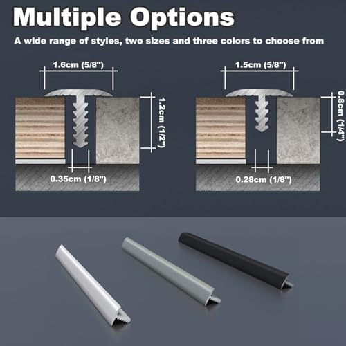 Enhance your living space with our premium Threshold Transition Strips, designed to create seamless transitions between different flooring types while ensuring safety and style. These strips are perfect for homeowners looking to improve the aesthetics of their interiors, whether you are upgrading your vinyl planks, laminate, tile, or concrete floors. Crafted from durable aluminum alloy, our transition strips promise longevity and resistance to wear and tear. With a load-bearing capacity of up to 300 kg (660 lbs), they provide robust support for high-traffic areas in your home. The sleek design and variety of color options ensure that you can find the perfect match for your decor, elevating the visual appeal of any room. Installation is straightforward, making it easier than ever to improve your flooring transitions without professional help. The waterproof and moisture-proof features ensure that these strips remain functional and attractive in any environment, while the high hardness allows for easy cleaning and maintenance. These transition strips are not just practical; they also add a touch of elegance to your floors. Whether you're connecting floors made from different materials or simply covering unsightly seams, our strips provide a flawless finish that enhances your home's overall look. Please note that our package includes one transition strip without adhesive. Before purchasing, ensure that the dimensions meet your needs: the length is 90 cm (35 3/8") with sizes available at 1.6 x 1.2 cm (5/8" x 1/2") and 1.5 x 0.8 cm (5/8" x 1/4"). Minor measurement variations of 1-2 cm may occur. Transform your space effortlessly with our Threshold Transition Strips and enjoy a beautiful, cohesive flooring solution.