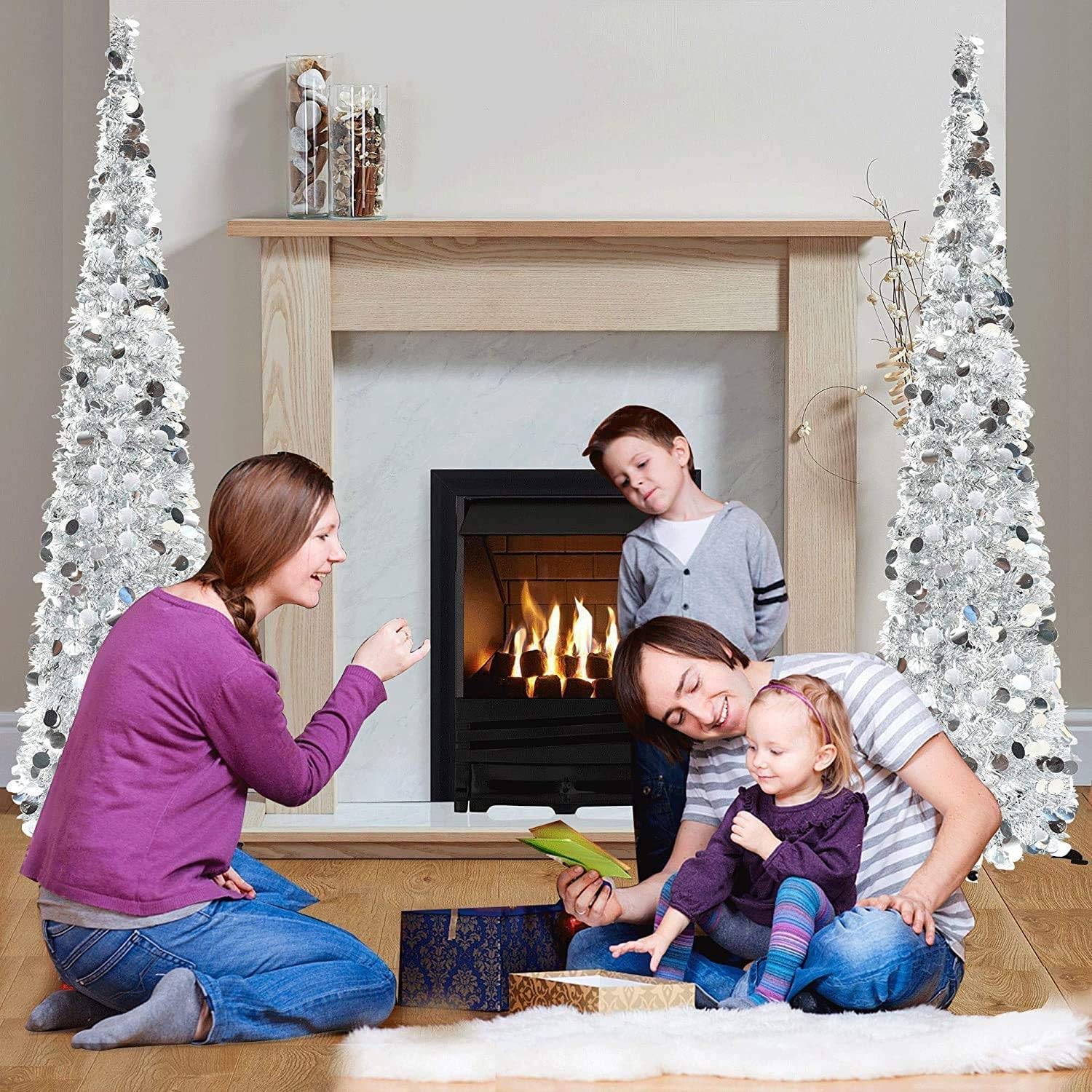 Indoor Christmas party supplies, add a shocking reflective theme to your Christmas celebrations. Children play in front of the fireplace or wait for gifts around the Christmas tree. Enjoy the warm festive atmosphere with your family.Size: 120CMMaterial: PVC+color sequinsLight source type: no light