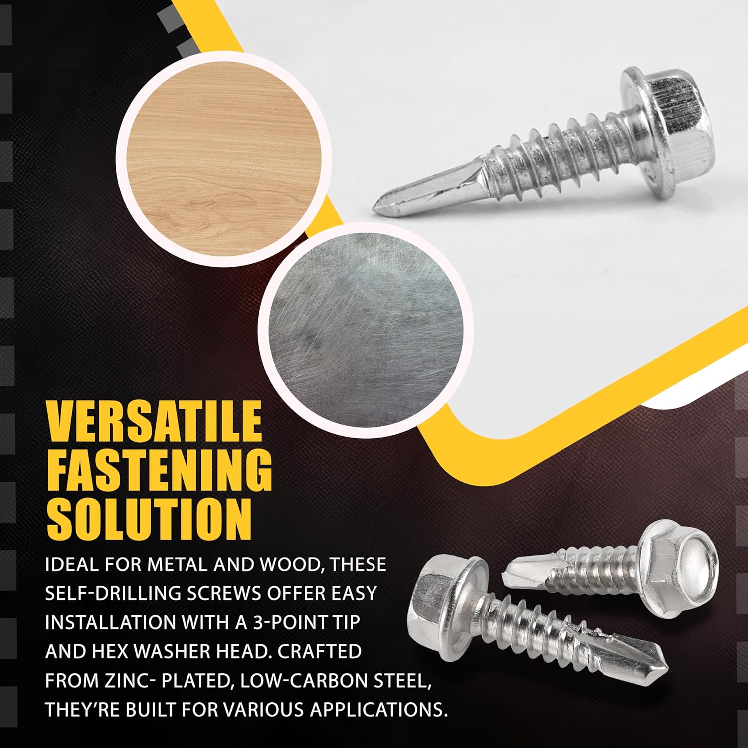 ASMC Industrial Self-Drilling Screws feature a precision 3-point tip, eliminating the need for pre-drilling and making them perfect for joining sheet metal to metal or wood. Made from zinc-plated low carbon steel, they offer excellent corrosion resistance and durability. The hex washer head provides a secure grip for easy installation. Ideal for construction, automotive, HVAC, and DIY projects, these screws deliver reliable fastening for a wide range of applications.