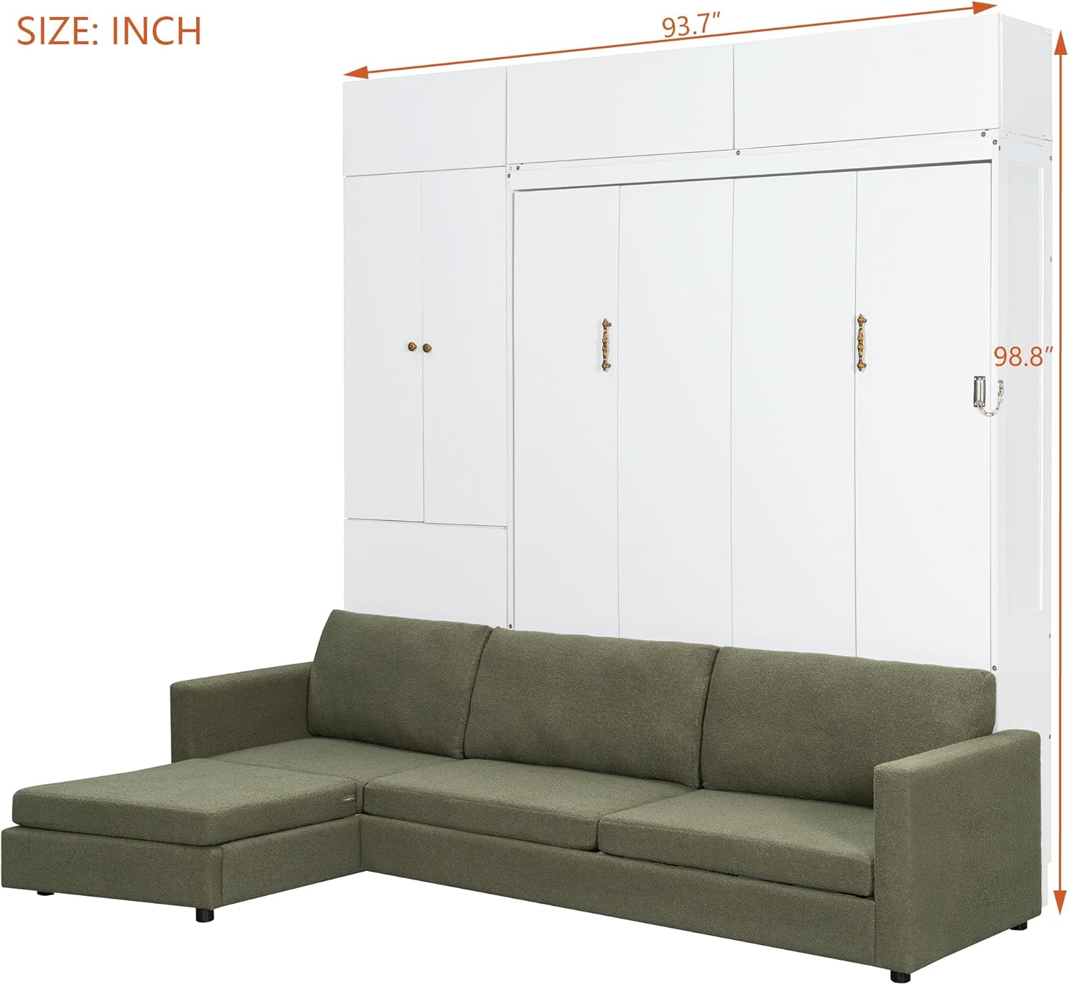 | Item Type Name | Ball & Cast Wall Bed Queen Size with Sofa and Shelves,Multi-functional Hideaway Murphy Bed w/ Teddy Fleece Couches & Dual-Piston Metal Folding System Cabinet,Lock,Space Saving for Bedroom,Green |