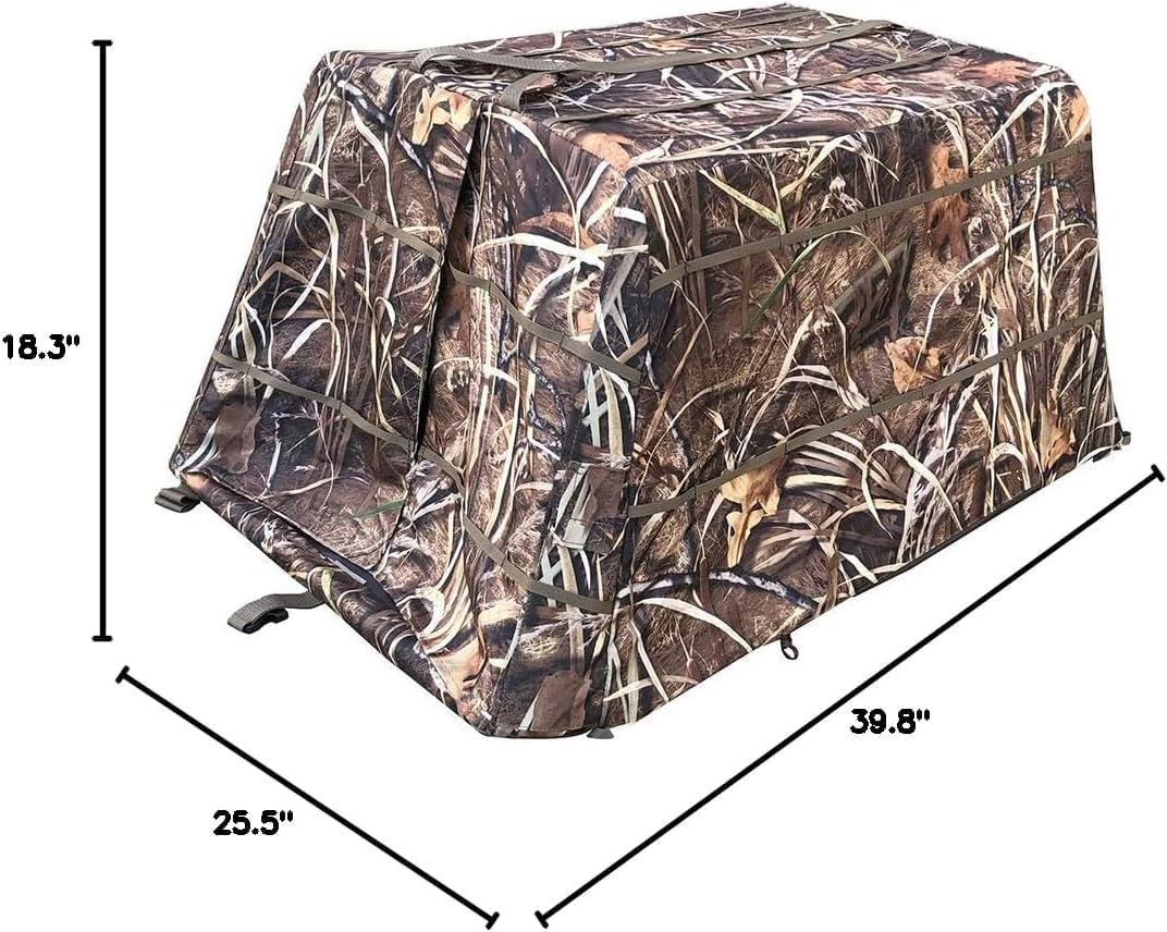 Enhance your waterfowl hunting experience with this innovative dog blind, designed specifically for field hunting adventures with your four-legged companion. This quick-setup blind provides essential concealment for your hunting dog while maintaining their comfort and mobility in the field. The blind features a practical design that allows your dog to stay hidden yet ready for action when retrieving. Its swift deployment system means less time setting up and more time hunting. Perfect for duck and goose hunting scenarios, this blind helps keep your dog concealed from sharp-eyed waterfowl. The portable structure is built to withstand the demanding conditions of waterfowl hunting, from muddy fields to marshy areas. Whether you're hunting in stubble fields, flooded timber, or grass fields, this dog blind is an essential piece of gear for serious waterfowl hunters who hunt with their canine partners.