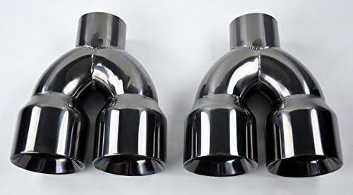 Package Contains: Two Dual Exhaust Tips 100% New, Never used or installed Individual Tip OD: 4" Total Width of both tips: 8 3/4" Depth: 9" Inlet: 2.50"