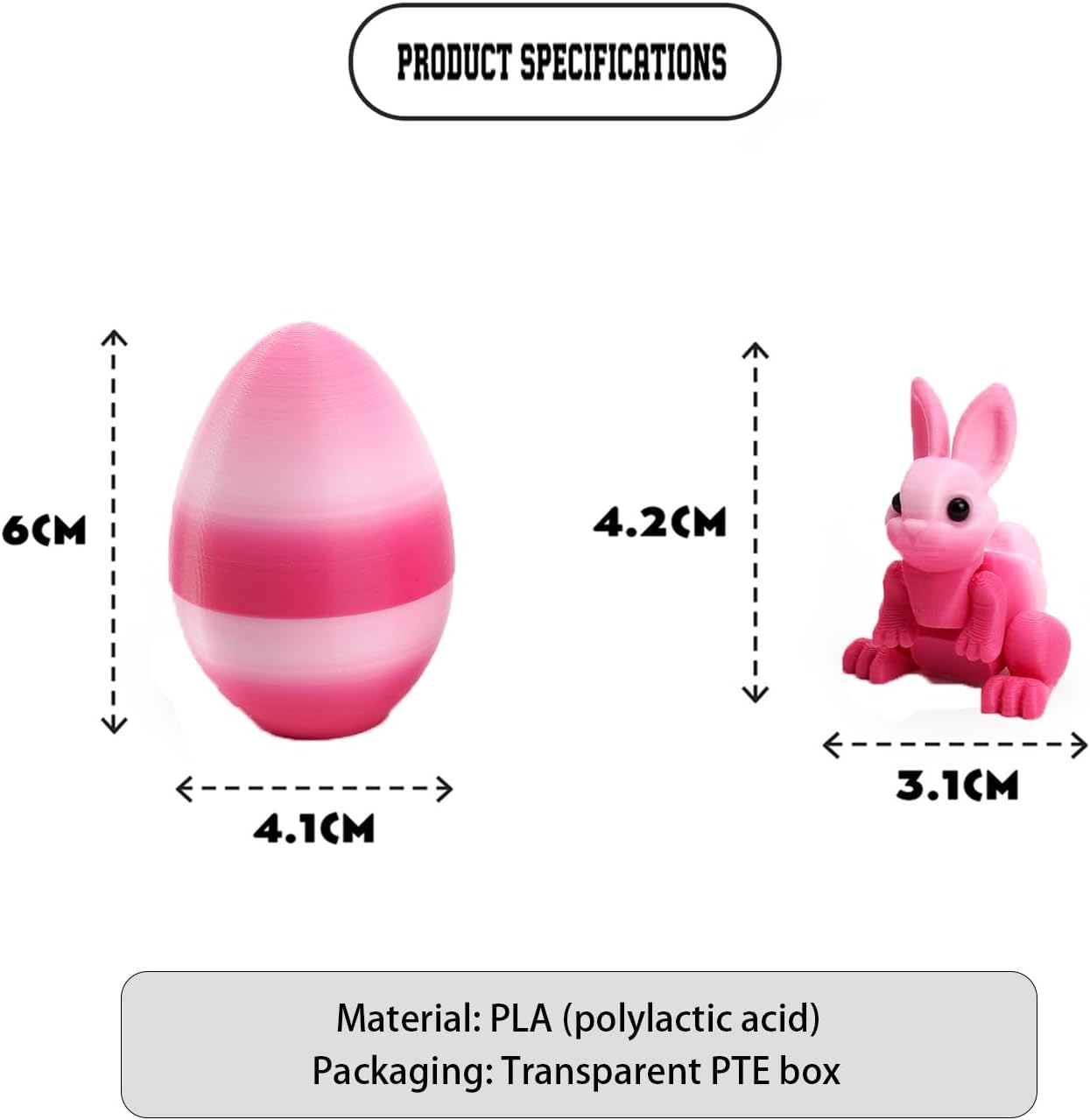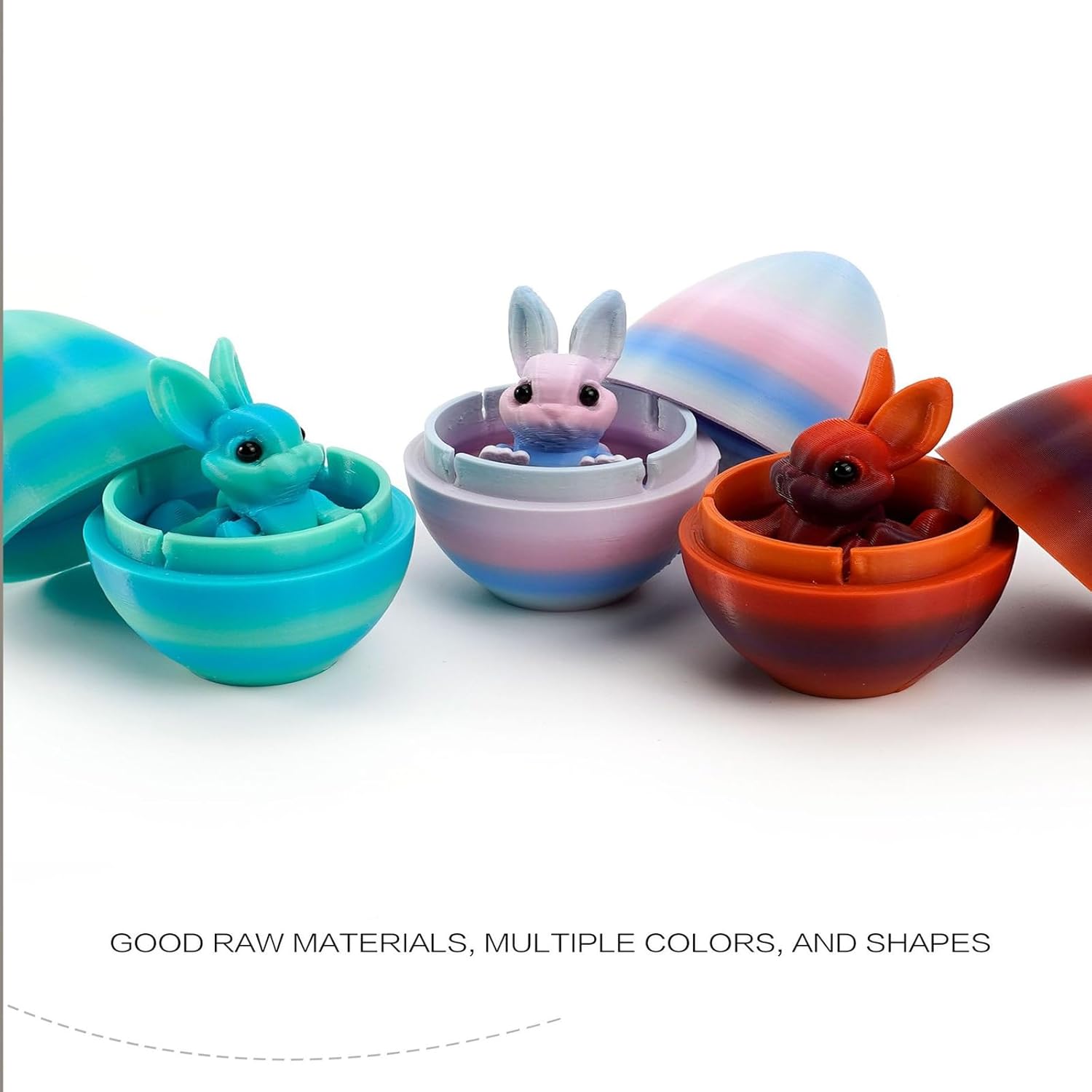 Elevate Your Easter Celebration with Our 3D Printed Bunny Egg Set! Get ready for the holiday season with this must-have Easter bunny egg set—a perfect blend of playful fun and festive charm, ideal for Easter egg hunts, party favors, kid’s toy collections, and holiday decor. Each set includes vibrant, 3D-printed eggsthat open to reveal adorable rabbit figurines—adding a "surprise toy" twist that kids and adults will love. Crafted from non-toxic, BPA-free materials (meeting global toy safety standards), these durable, smooth-finish eggs and bunnies are safe for little hands (ages 3+) to play with, while their eye-catching gradient/colorful designs make them stand out as table centerpieces, basket fillers, or classroom rewards. Beyond Easter, this versatile set works as birthday goodie bag gifts, seasonal home decor, or even DIY craft accessories—a multi-use item that delivers long-lasting value. Whether you’re prepping for an Easter gathering, hunting for affordable holiday gifts, or need kid-friendly party supplies, this 5-pack 3D printed bunny egg set checks all boxes: cute, functional, and budget-friendly. Don’t miss out on the perfect addition to your Easter essentials—order now and make this holiday extra memorable!