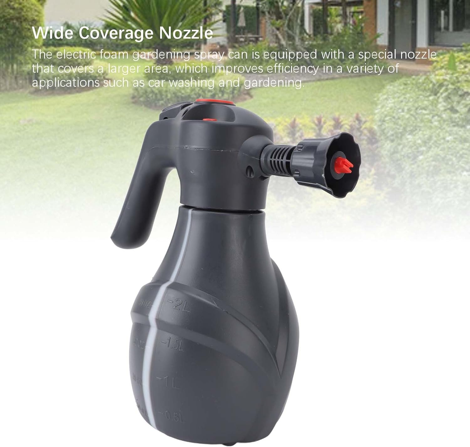 Item Type: Electric Foam SprayerMaterial: PAType: Foam SprayerPackage List:1 x Foam Sprayer1 x Nozzle5 x Accessories1 x USB Data Cable1 x English Instruction ManualNote:1. It is not recommended to spray chemical agents, as it may damage the product.2. Do not fill water above the designated water level line.3. Store in a cool place and avoid exposure to direct sunlight.4. If any liquid accidentally enters the eyes during foam spraying, rinse with water immediately.5. To test the quality of the sprayer, water droplets may appear inside the sprayer, which is normal.Note: The foam sprayer has measuring lines on the body. Do not exceed 1.5L when adding water. The ratio of car wash liquid to water is 1:50 for better bubble effect.