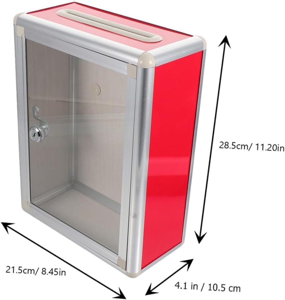 Package List 2 x Wall Mount Mailboxes Characteristics - Color: Red metal wall mounted mailbox -Material:Aluminium alloy,acrylic metal wall mailbox with lock - Size: 28.50X21.50X10.50cm/11.20X8.45X4.13in wall mailbox with lock - Suitable capacity for storing envelope, newspaper, suggestion letter, as well as the letter box wall mounted mailbox. - With lock design and well polished, this mail box does not hurt hands when used metal wall mailbox. - Help prevent your important mail from being destroyed, stolen or . Wall-mount design, save space. wall mailbox - Manufactured with material, the suggestion box is durable and practical in use. Can be used with confidence wall mounted mailbox with lock. - This suggestion box is simple but practical in performance, you can use this box on many occasions wall mount mailbox with lock.Goods Informationwall mounted mailbox with lock Wall suggestion box provides convenience and security for suggestion, mails, letters and much more.wall mount mailbox Big enough to hold various padded envelopes, paperwork, newspapers, magazines, etc.metal wall mailbox with lock What's more, the suggestion box is lockable that the letter will not be stolen