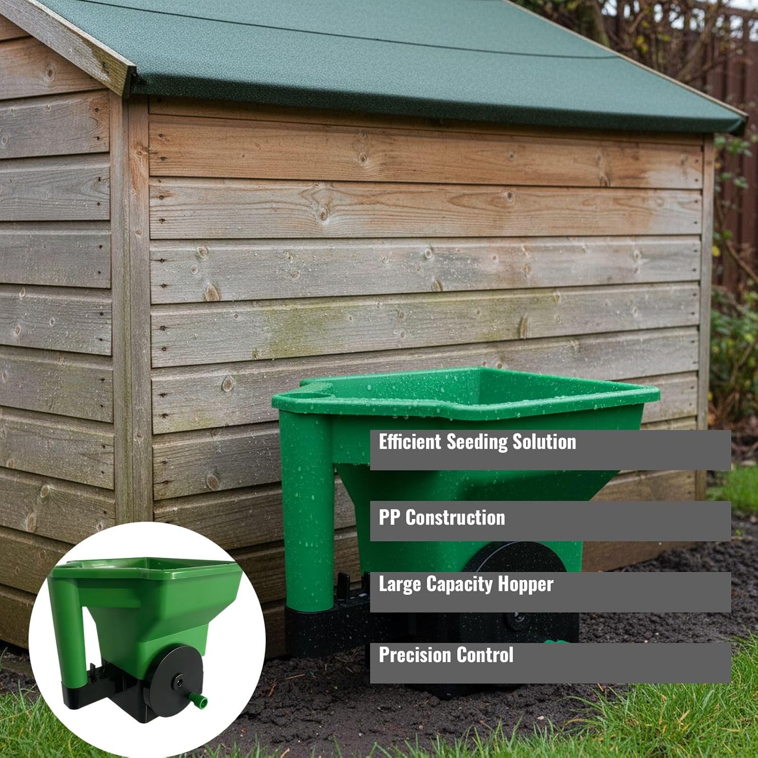 This portable hand-cranked spreader is designed for efficient and even distribution of materials. It features a PP construction with a large hopper for holding contents, making it suitable for use in lawns, gardens, and planting areas. The manual crank allows control over the distribution rate, ensuring uniform coverage across targeted zones. Lightweight yet durable, it offers ease of use for gardeners, landscapers, and planting enthusiasts alike. Whether you're handling grass seeding, greenhouse gardening, or outdoor planting, this hand operated tool provides reliable performance without the need for electricity or complex mechanisms. Its compact size and thoughtful design make it a practical tool for any planting project requiring accuracy and consistency.