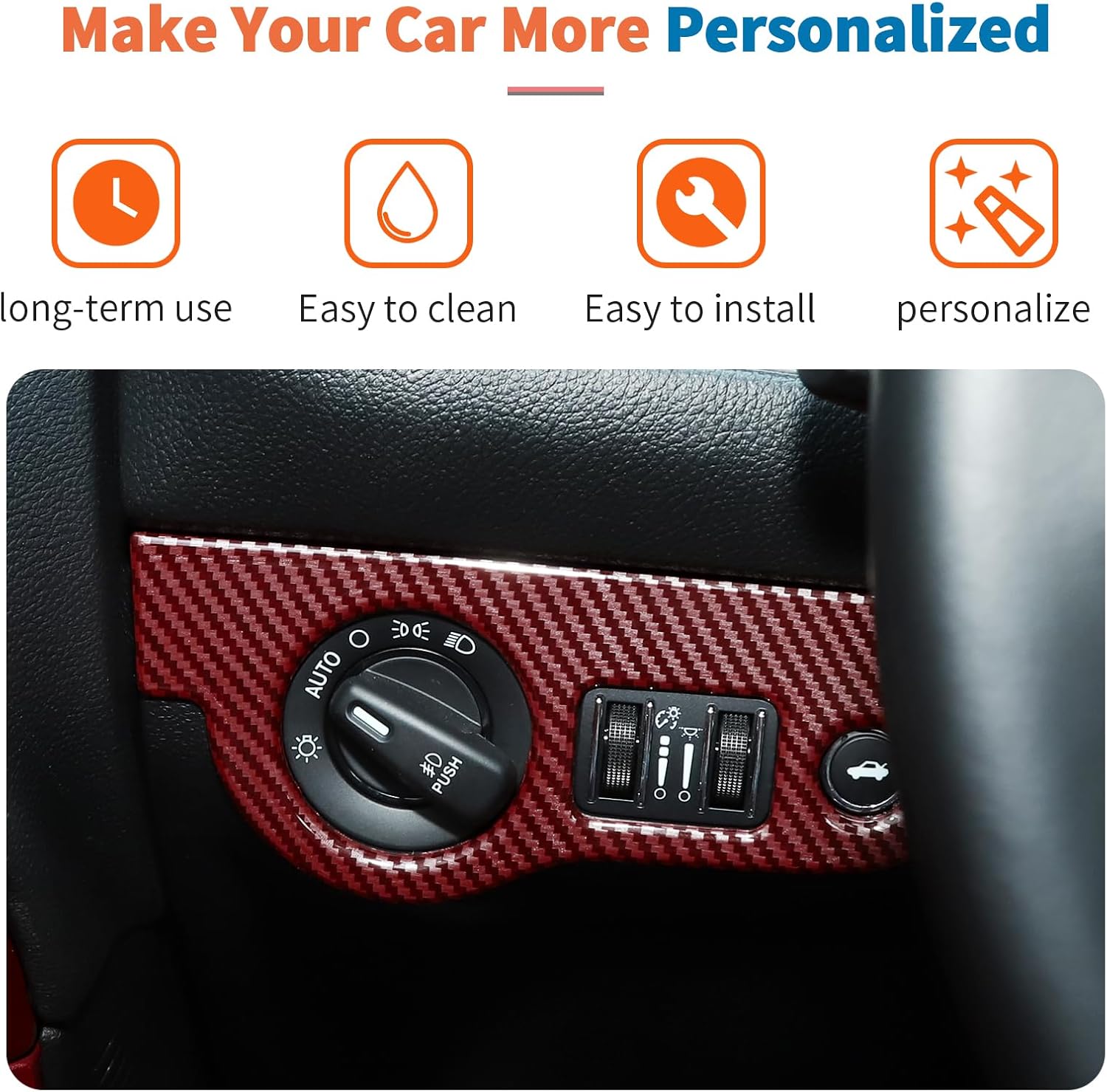 Item Description: JeCar 21pcs Red Carbon Fiber Interior Trim Kit Fit for 2015 2016 2017 2018 2019 2020 2021 2022 2023 Dodge Challenger Condition: 100% Brand New Material: High-Quality ABS Color: Red Carbon Fiber Features - Personalized custom design to create a unique interior trim style for your Challenger; - Adding new beauty to your Challenger; - Show off your personality and coolness with distinctive accessories; - Protect your Challenger interior accessories from potential damage caused by external factors or daily wear and tear. - High-quality material, durable, with good durablilty, and weather resistance, bring long-lasting protection for your Challenger interior parts; - Easy to install, no specialized tools required. Installation Tips: * Please clean the covered area thoroughly; keep it dry without dust; * Heat the adhesive tape with a hair dryer or lighter; * Paste the accessories in the corresponding position and press them with your hand to make them more solid. Package Included: - 21pcs Full Set Interior Panel Decoration Covers