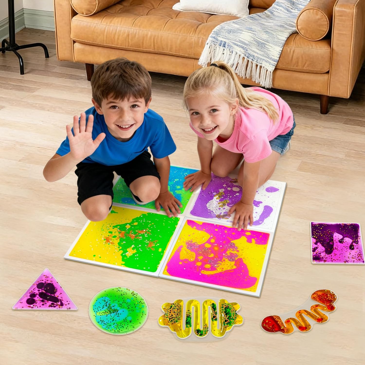 Dive into a world of sensory wonder with Qoytqoy Sensory Floor Tiles—the ultimate interactive play mat designed for kids ages 3 and up! Each tile bursts with an Exciting Sea Life Design, where colorful marine creatures glide through glitter-infused liquid, capturing young imaginations and transforming floors into dynamic underwater landscapes.These tiles are Best for Sensory Seekers, offering therapeutic benefits for children who crave tactile input. The gentle pressure of stepping on the liquid-filled pads provides deep pressure stimulation, promoting calmness and improving concentration—ideal for ADHD, autism, or high-energy toddlers.Experience Multi-Sensory Stimulation at its finest: Watch mesmerising liquid currents, feel the cool, squishy texture underfoot, and listen to soothing sloshing sounds. This triad of sensory input enhances neural development, motor skills, and emotional regulation through playful exploration.Prioritizing safety, our tiles are Safe & Eco-Friendly. Made from non-toxic, phthalate-free PET and recyclable materials, they meet rigorous international safety standards. Parents and educators can trust a product free from harmful chemicals.Built for active play, the Durable & Non-Slip construction features reinforced seams to resist punctures and textured grips that anchor tiles securely to any floor—whether on hardwood, carpet, or tile. The anti-slip base ensures stability during energetic jumps and dances.Perfect for classrooms, homeschools, therapy centers, and living rooms, these tiles foster collaborative play while supporting educational goals. Use them for sensory circuits, fidget breaks, or imaginative storytelling sessions. The 4-pack set encourages group activities, helping kids build social skills as they share a vibrant, movable play space.Included: 4 sensory tiles (each 11.8”x11.8”), easy-clean surfaces, and a waterproof design that withstands spills. Ignite curiosity, movement, and joy—order your Qoytqoy Sensory Floor Tiles today!