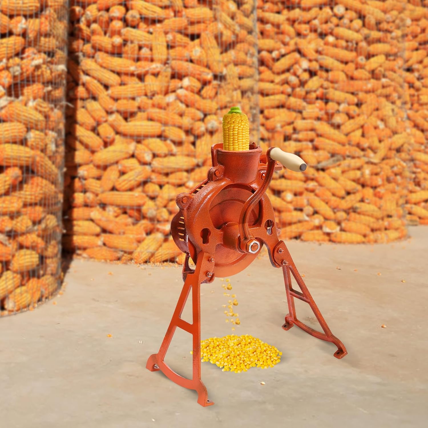 DetailsSturdy Bearing: It provides a strong connection to prevent the handle from falling off during operation, making the operation smoother.Adjustable Opening: You can adjust the size of the feed opening according to the size of the corn, which is more practical.ApplicationIt is suitable for quick cornhusking at home and on small farms.SpecificationsColor: OrangeMaterial: Cast Iron, WoodProcess: Spray PaintAssembly Required: YesFeed Opening Size: 10cm/3.93inchSide Opening Size: 10cm/3.93inchProduct Size: 38*20*42cm/14.96*7.87*16.53inchPackaging Size: 34*29*16cm/13.39*11.42*6.3inchGross Weight: 4.1kg/9lbsNet Weight: 3.6kg/7.94lbs Package Included1*Manual Corn ThresherNotes1. Please check the size carefully before ordering.2. Please note that the handle should be cranked clockwise instead of anticlockwise. The product is manual and the exact corn threshing speed depends on your own operating speed.3. Please note that this product suits for dry corn cob. The dryer the corn cob is, the easier the operation will be.4. Please allow the slight color difference caused by the shooting light and 1-3cm error due to manual measurement, and make sure you do not mind before you order.