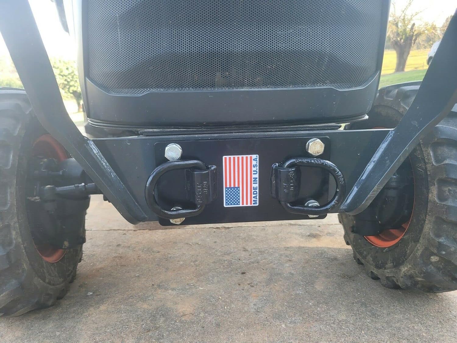 Secure your Kioti or Bobcat with confidence during transportation using our custom-made Front Bumper Hitch D-Ring Bracket Tie Down Hooks. These heavy-duty hooks are ideal for strapping down your machine, ensuring its safety on the road or on the job site. With a powder-coated finish, this not only provide durability but also add a sleek accent to your equipment. Constructed from superior quality 1/4" thick steel plating, these tie-down hooks offer unmatched strength and reliability. The easy bolt-on mount provides ultimate stability, giving you peace of mind while towing. Proudly made in the USA with USA steel, our tie-down hooks are built to last, offering you the assurance of top-notch quality and performance.