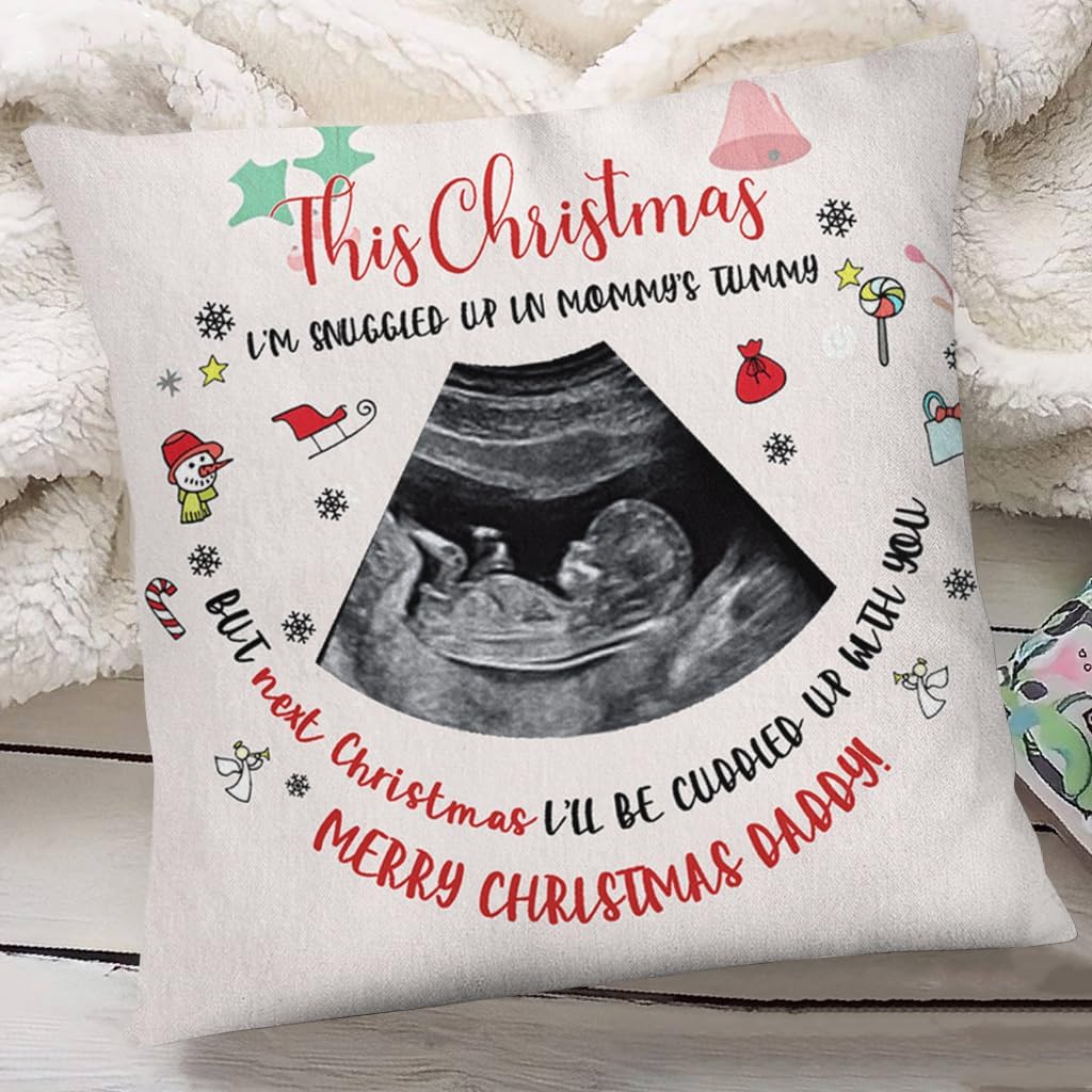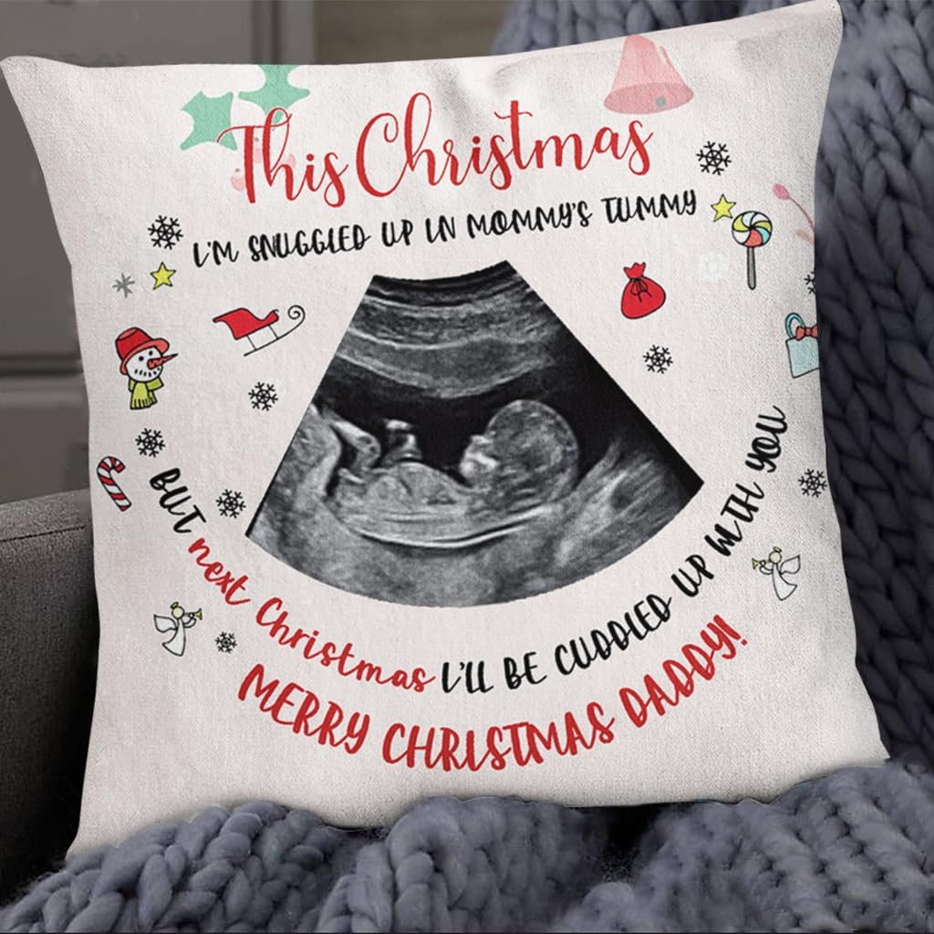 HOW TO CUSTOMIZE:Click the "Customized now" buttonNote your informationABOUT OUR PRODUCTS:Available in three sizes: Small, Medium, and Large.Versatile use: great for laying on the sofa or couch and enjoying your favorite movies.Crafted with an ultra-soft 100% Polyester Twill cover and a polyester pillow insert.GUARANTEED MONEY BACK:Quality and customer satisfaction are our top priorities.We offer a refund or replacement if you receive products of poor quality.If you have any questions or concerns, please don't hesitate to contact us.The Next Christmas I'll Be Cuddled With You Sonogram Square Pillow Is A Great Gift:Ideal for new dads, first-time dads, dads-to-be, fathers-to-be, and expecting dads.Suitable for various occasions such as First Father's Day, birthdays, Christmas, Thanksgiving, gender reveals, and pregnancy announcements.Thoughtful gifts for new moms and dads, including sentimental and unique options.Explore our wide selection of presents for first-time dads, including cool and funny gift ideas.Great for expressing love and excitement for the journey of becoming a dad.Celebrate the joyous moments of impending fatherhood with these meaningful gifts.