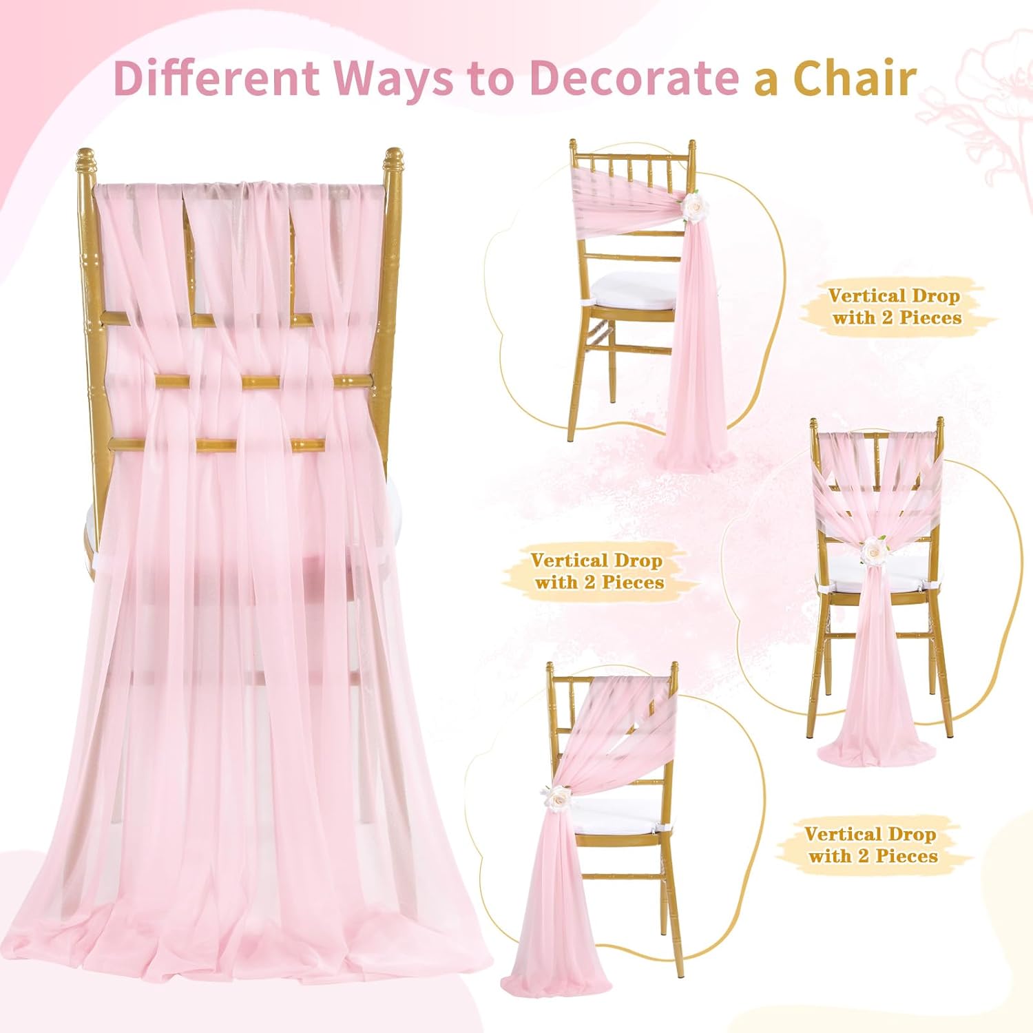 Tulle chair sashes can be choose to Machine washable in laundry bag or hand wash in cold water with mild detergent, dry clean. Wedding sheer chair sashes will help you to create a sophisticated look for your event. Sheer chair sashes made of smooth and silky material that is wrinkle-resistant soft. Perfect for special occasions or events, this chair bows ties with rich texture will beautifully dress up your banquet. Wedding tulle chair cover catered presentations when you use it on events, you can receive compliments from the guests. ABOUT US: Our manufacturer integrates Production, Sales and Service. We have our own material factory and processing factory.