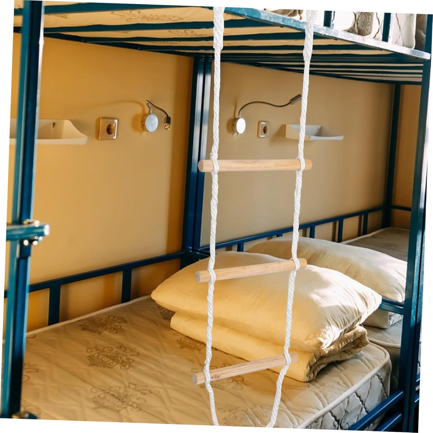 Package Include 1 x rope ladder Features -Material:Wood, cotton rope rope ladder playset -Size:150.00X41.00X3.00cm/58.95X16.11X1.18in ladder rope -Color:Beige bunk bed ladder -This ladder is for use in dormitories, homes, and schools, accommodating the needs of multiple users and providing a practical for various settings climber. -You can easily install this rope ladder on the bunk bed, and playground tree house, funny and versatile tree rope ladder. -Featuring a foldable design, this ladder is highly portable and convenient, allowing for easy transportation and storage climbing rope ladder. -Constructed from high-strength materials, this ladder ensures exceptional stability and durability playground accessories. -The rope ladder is of high strength that can withstand the heavy duty when use ladder playset.Goods Descriptionrope ladder Crafted from high-strength materials, this rope ladder ensures stability and durability, making it for dormitories, homes, and schools.tree ladder Discover the convenient for safe and versatile climbing with our home-use bunk bed ladder.ladder for loft bed Its foldable design allows for easy storage and portability, ideal for moving and travel