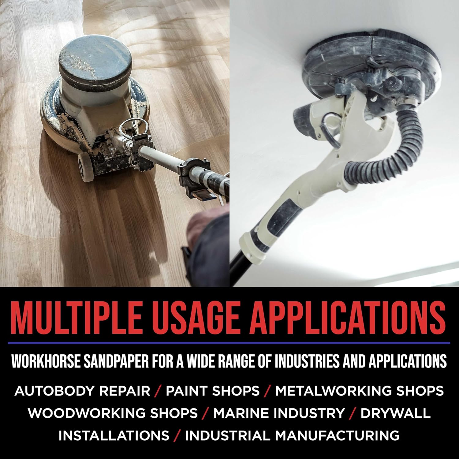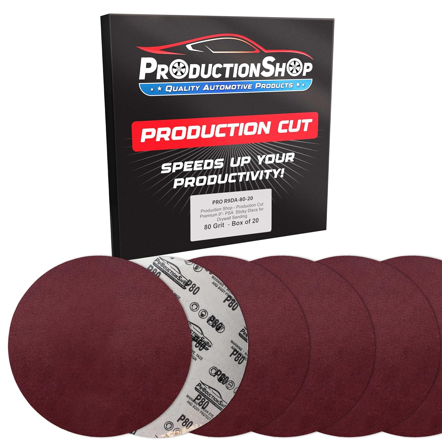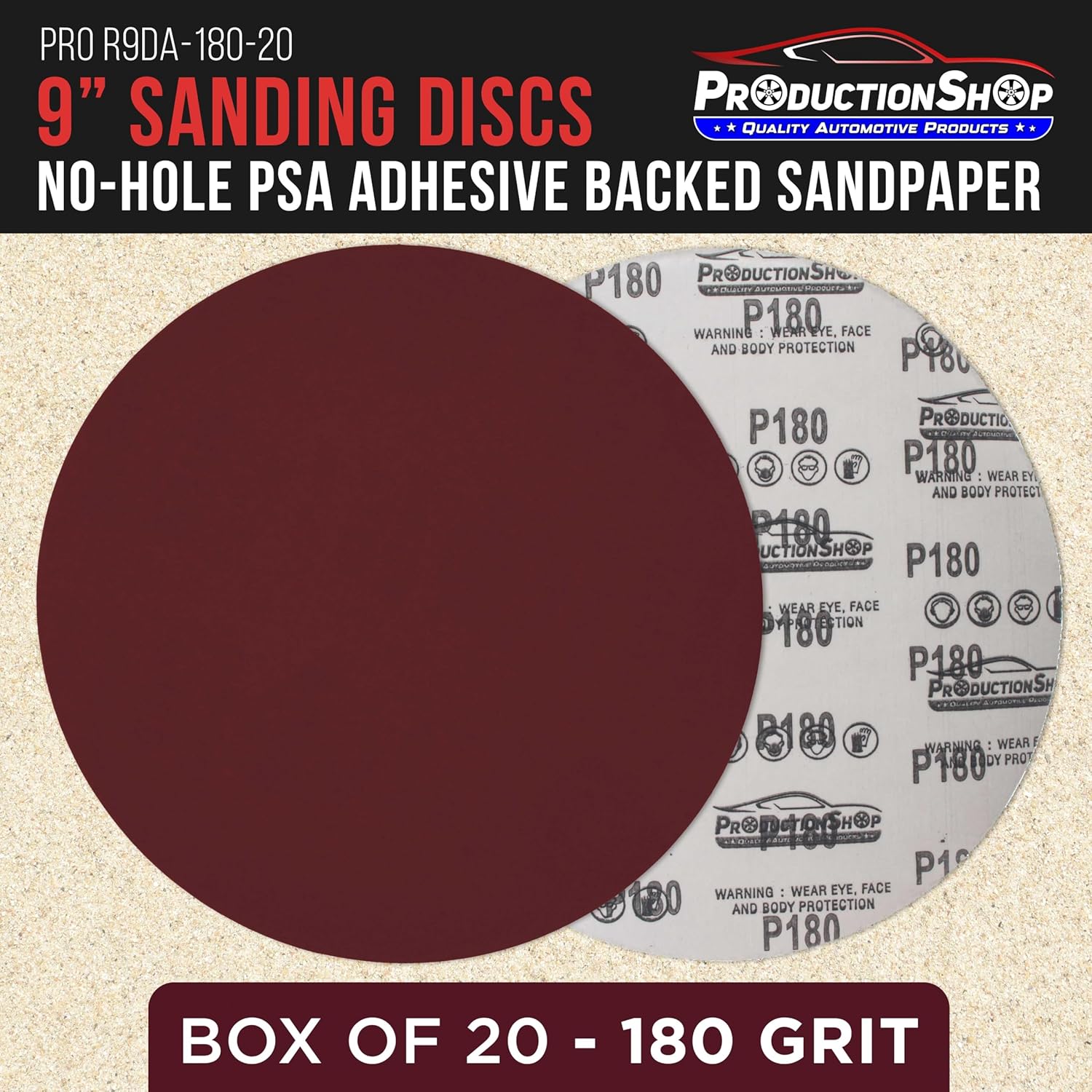 ProductionShop Premium 9" Red 180Grit Sanding Discs, Box of 20 - No-Hole Hook & Loop Backing Sandpaper for Drywall Power Sanders, Coarse-Cut Abrasive - Woodworking, Sand Wood, Metal Automotive Paint