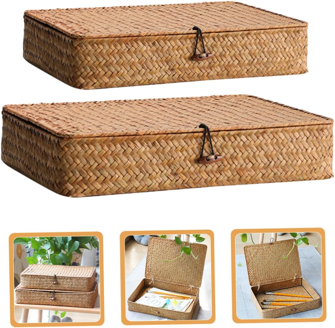 Package List 2 x Woven (2 sizes) Features - Size: 32.50X28.00X7.50cm/12.77X11.00X2.95in toilet paper storage basket - Size: 30.00X22.00X6.50cm/11.79X8.65X2.55in basket with lid decorative storage -Material:Straw for shelves -Color:Khaki basket for storage - woven are versatile, can be as daily sundries box, or as present box for special occasions storage basket for shelves. - Woven meet different needs for daily life. Fine weaving for both beauty and practicality storage woven. - You can use woven to store cosmetics, toiletries, and other items you want to keep for bathroom organizing. - Multi-functional storage for a tidy desktop, convenient for transportation, ideal to use as storage for home small woven basket with lid. - Straw woven are solid in construction, workmanship, carefully crafted for lasting use organizer .Goods Information for storage Woven for storage are made of straw material, which is for use.organizer Proper size, woven are stackable, won't take up much space.shelf for storage Woven are a great present on christmas, birthday or other , beautiful and