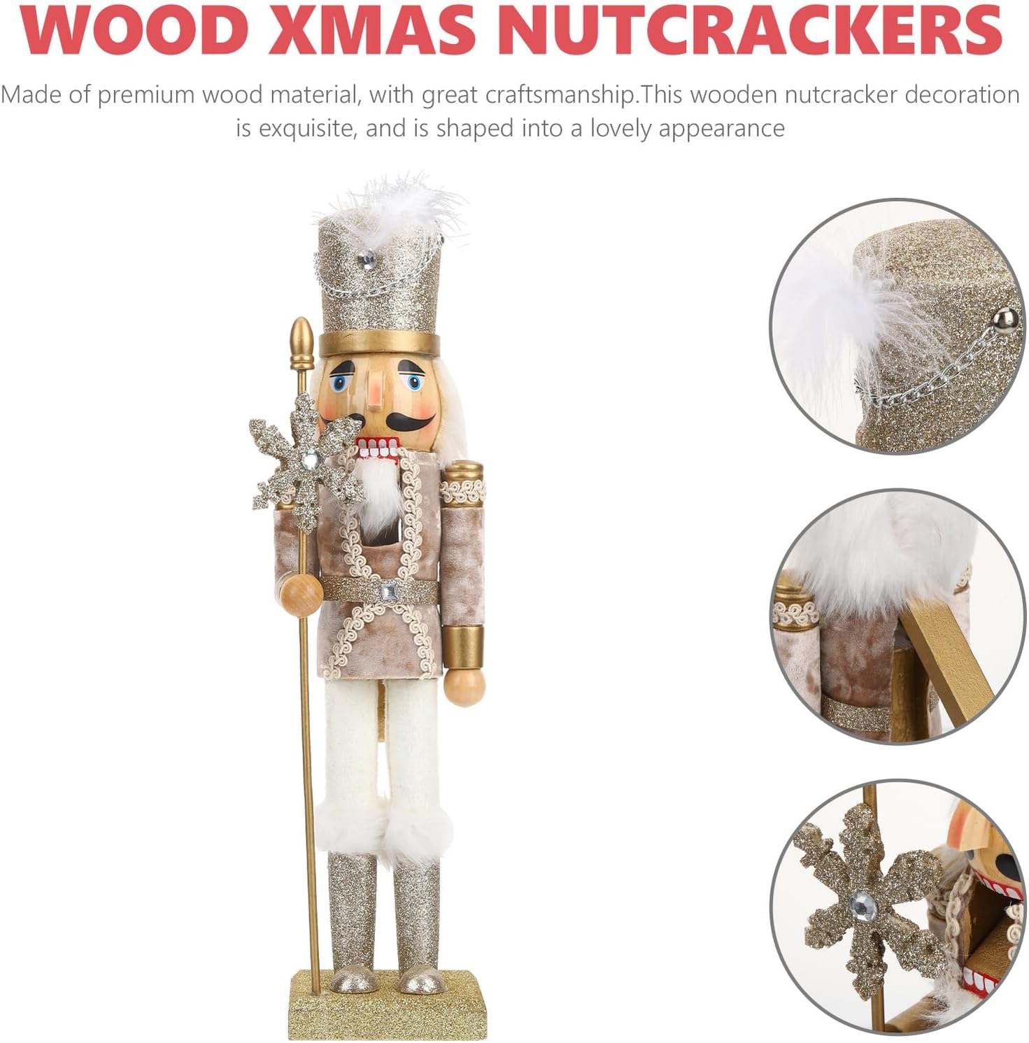 Package List 1 x wooden nutcracker Features - Size: 38.00X9.00X8.00cm/14.93X3.54X3.14in -Product Info:Nutcracker ornaments -Material:wood - With this lovely nutcracker ornament, your home, car and office will have a new look xmas traditional nutcracker soldier. - ColorGolden - You can use this lovely wooden nutcracker as a photo prop to take some good and cool pictures decorative nutcrackers. - Made from good grade material with a great workmanship, the wooden nutcracker decor is sturdy and . - You can place wooden nutcracker anywhere in your home as a decoration to add to the atmosphere traditional nutcracker soldier. - Perfect for bedroom, living room, home, car and so on. Also, is a good for your classmates, family, friends and colleagues nutcracker table decor.Goods Informationwooden nutcracker Made of premium wood material, a great Christmas decoration for home, office, desktop and other places, and can use as a choice.traditional wooden nutcracker Are you looking for a classic Christmas wood craft? This classic nutcracker puppet decoration can be a good choice to you