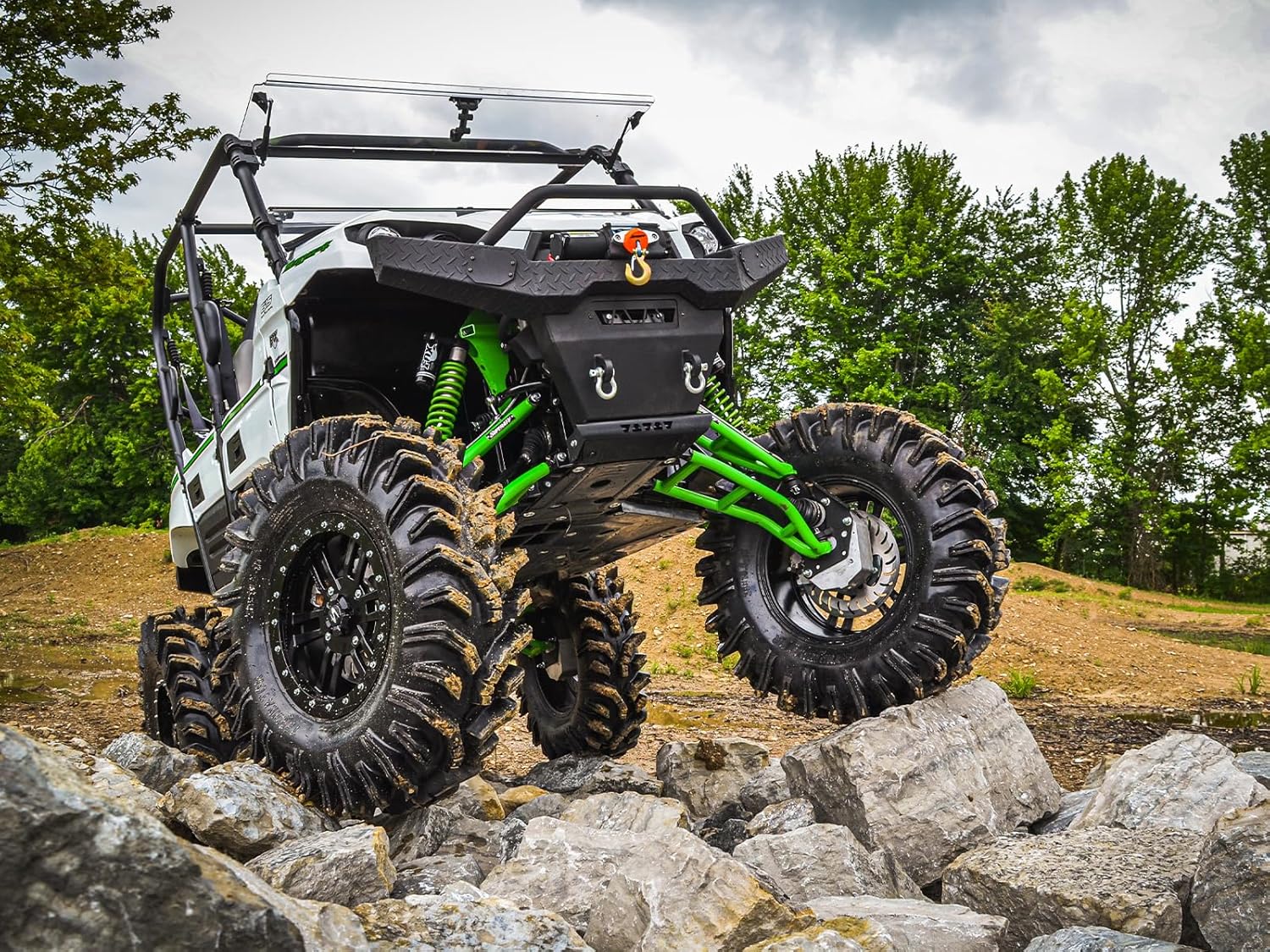 TERMINATOR TIRE SuperATV's Terminator is hands down the most aggressive mud tire on the market. The Terminator has the ability to take you where other tires can only dream of going. The Terminator's 6-Ply construction is designed for ultimate off-road performance, guarding against all the thorns and terrain you can put it through. With its angled tread design, the tire diverts mud away for improved grip and traction. Fitment: 28x10-12