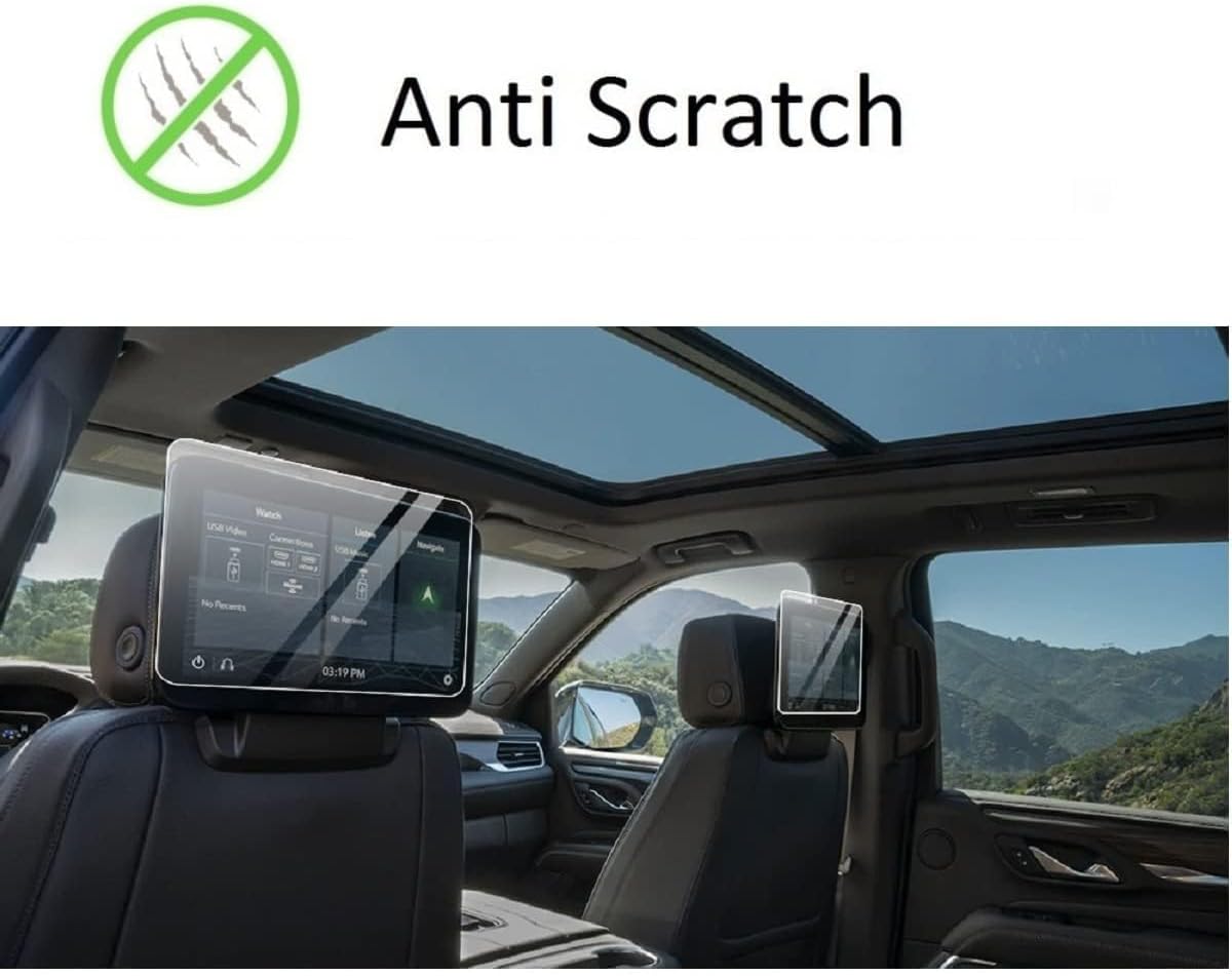 Upgrade Your Cadillac Escalade AccessoriesProtect your 2021-2026 Escalade’s premium rear-seat screens with a must-have accessory for luxury SUV owners. Daily hazards like keys, tools, or abrasive cleaning can damage the display. Our tempered glass offers:9H Hardness: Guards against scratches, impacts, and fingerprints.True HD Clarity: 0.33mm thickness ensures no loss of brightness or touch responsiveness.Quick Installation: Align effortlessly using the top-edge guide; zero bubbles or residue.3-Step Setup for Perfect ResultsWipe screens clean with included alcohol wipes and microfiber cloth.Align the protector using the top edge, then gently press from center to edges.Smooth out air pockets with the provided squeegee.Package Includes2x Tempered glass screen protectors2x Cleaning kits (alcohol wipes, dust stickers, microfiber cloth)