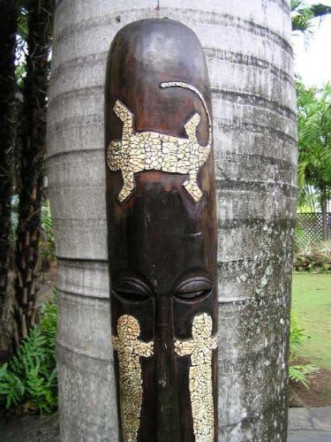 The 3-Geckos Tribal Mask is a stunning piece of primitive decor that will bring an enchanting touch of tribal charm to any space. This unique wall hanging measures a grand 40 inches tall and is designed with intricate details, including egg shelves, which give it an authentic and handcrafted look.The mask features three geckos, each carefully carved and placed to create a captivating visual effect. The geckos are meticulously detailed, with their scales and features etched into the mask, giving it a lifelike appearance. This attention to detail adds to the overall charm and appeal of the piece.Measuring 40" X 7" X 3", this mask is sure to catch the eye and become a focal point in any room. Whether displayed in a living room, bedroom, or office, it will undoubtedly spark conversations and serve as a great talking point for guests.Designed as a wall hanging, the 3-Geckos Tribal Mask comes with everything you need to easily display it on any wall. It is crafted with a sturdy backing and a secure hanging mechanism, ensuring that it stays in place and looks great wherever you choose to hang it.The primitive tribal design of this mask adds an element of exoticism and mystery to any space. It blends seamlessly with a variety of decor styles, from bohemian to eclectic, and complements both modern and traditional interiors. Whether your home is filled with rustic furnishings or sleek contemporary pieces, this mask will effortlessly elevate the ambiance and create a unique focal point.If you're seeking a distinctive piece that showcases artistic craftsmanship and tribal heritage, the 3-Geckos Tribal Mask is the perfect choice. Its intricate details, impressive size, and primitive tribal style make it a true work of art that is sure to make a lasting impression. Add this mask to your collection or gift it to someone who appreciates the beauty of authentic tribal art.