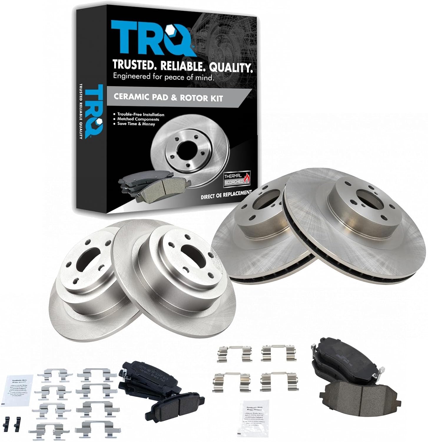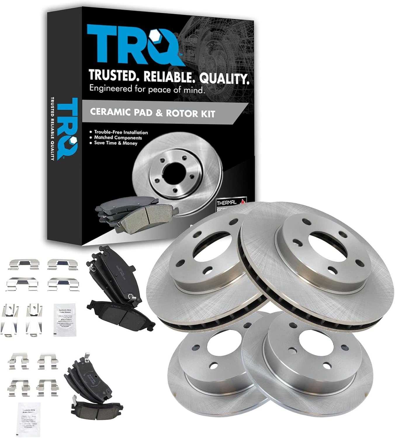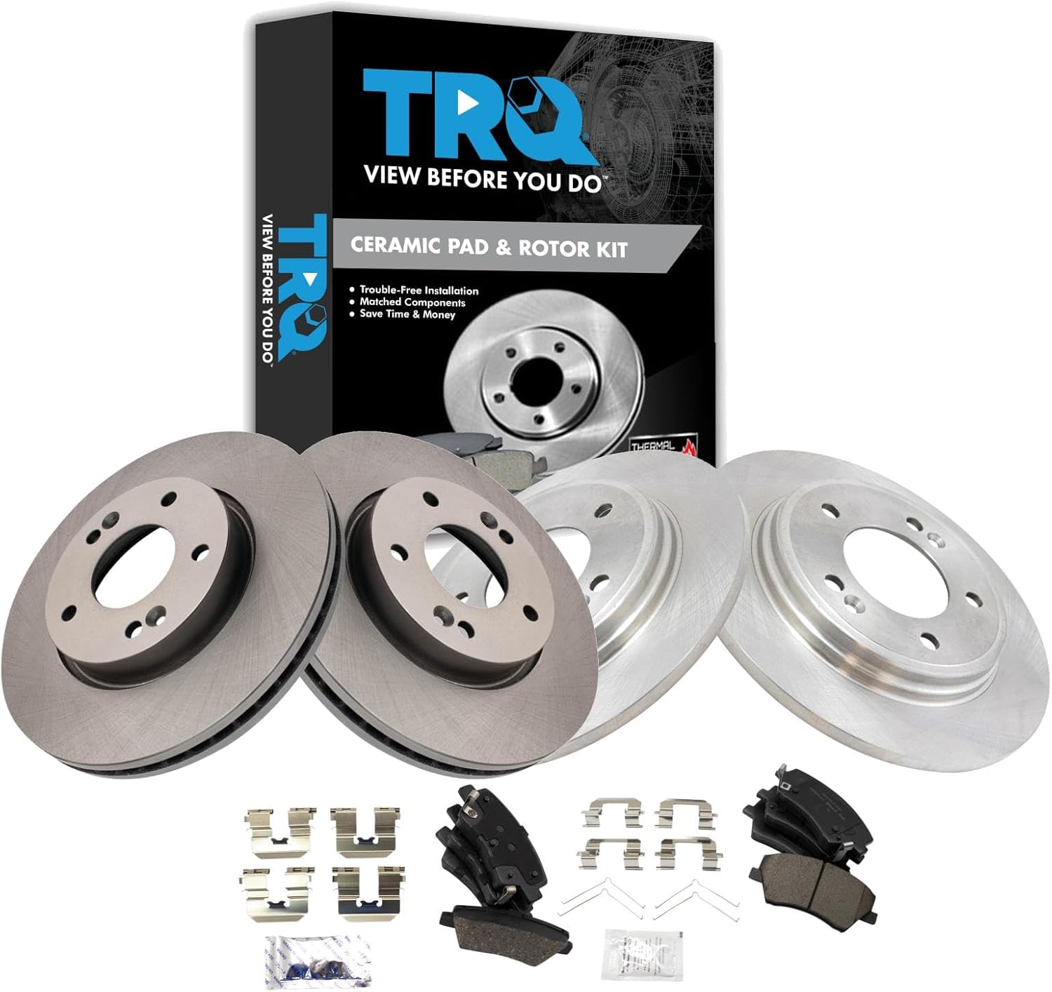 Ceramic Brake Pad & Rotor KitKit Includes(1) Front Ceramic Brake Pad Set(1) Rear Ceramic Brake Pad Set(2) Front Brake Rotors(2) Rear Brake Rotors9.25 in. (235mm) Front Brake Rotor Diameter9.09 in. (231mm) Rear Brake Rotor DiameterFitmentMazda Miata 1990-93 - Front & RearProduct AttributesFriction Material Composition: CeramicWheel Lug Count: 4 LugRear Brake Rotor Diameter: 9.09 in. (231mm)Front Brake Rotor Diameter: 9.25 in. (235mm)Brake Pad Friction Material: CeramicBrake Pad Bonding Type: Premium PosiRear Brake Rotor Venting Type: SolidFront Brake Rotor Venting Type: VentedProduct Features Positive Molded - Less dust resulting in clean wheels G3000 Casting Alloy - Reduced noise and improved wear resistance Application Specific Design - Extended service life, no modificationsItem DetailsTRQ brake kits are designed to restore your brake system to like-new performance. TRQ brake pads are positive molded, thermal scorched, chamfered, and utilize a multi-layer shim for enhanced performance and service life. TRQ rotors have a non-directional finish that reduces the break-in period for new rotors as well as reducing vibrations throughout the rotor’s lifecycle. All products are fit and road-tested in our Massachusetts R&D facility to ensure we deliver on our promise of Trusted Reliable Quality.Reference Numbers311003299894365981189701189219621396213FZN96213P96213R9621496214FZN96214P96214R97011892BD61986BD61998BR31100BR3299BWYH2643ZE0Y82643ZF1CZ2200AF2CZ2200AF3CZ2200BMGD458CHN0Y13323ZNAY02643ZNAY03323ZANAY12648ZPGD458CPGD468MPGD525MPRT1694PRT1717SGD458C