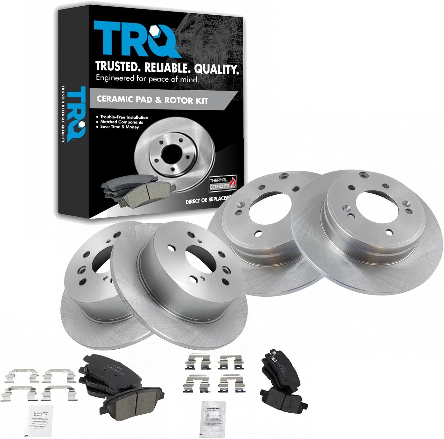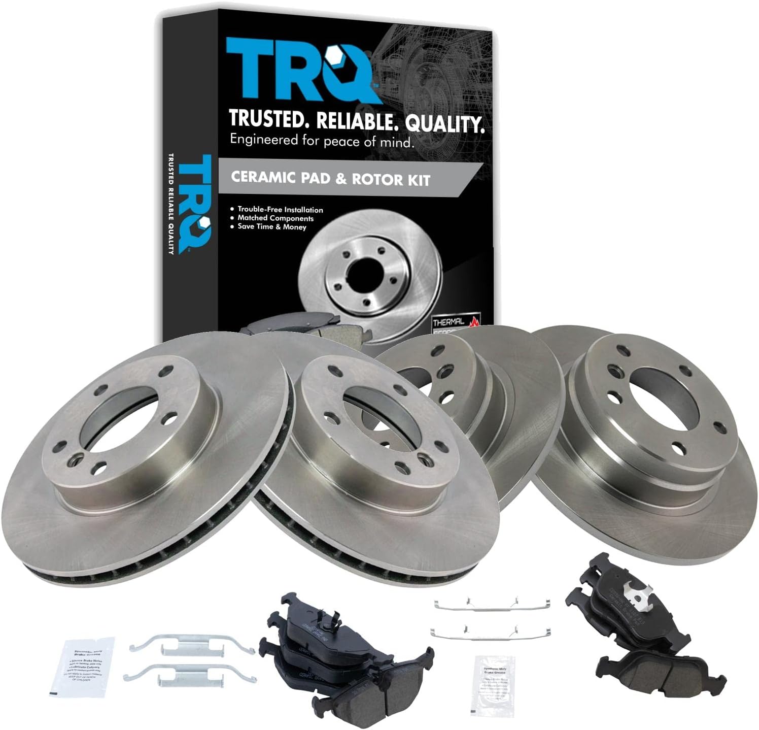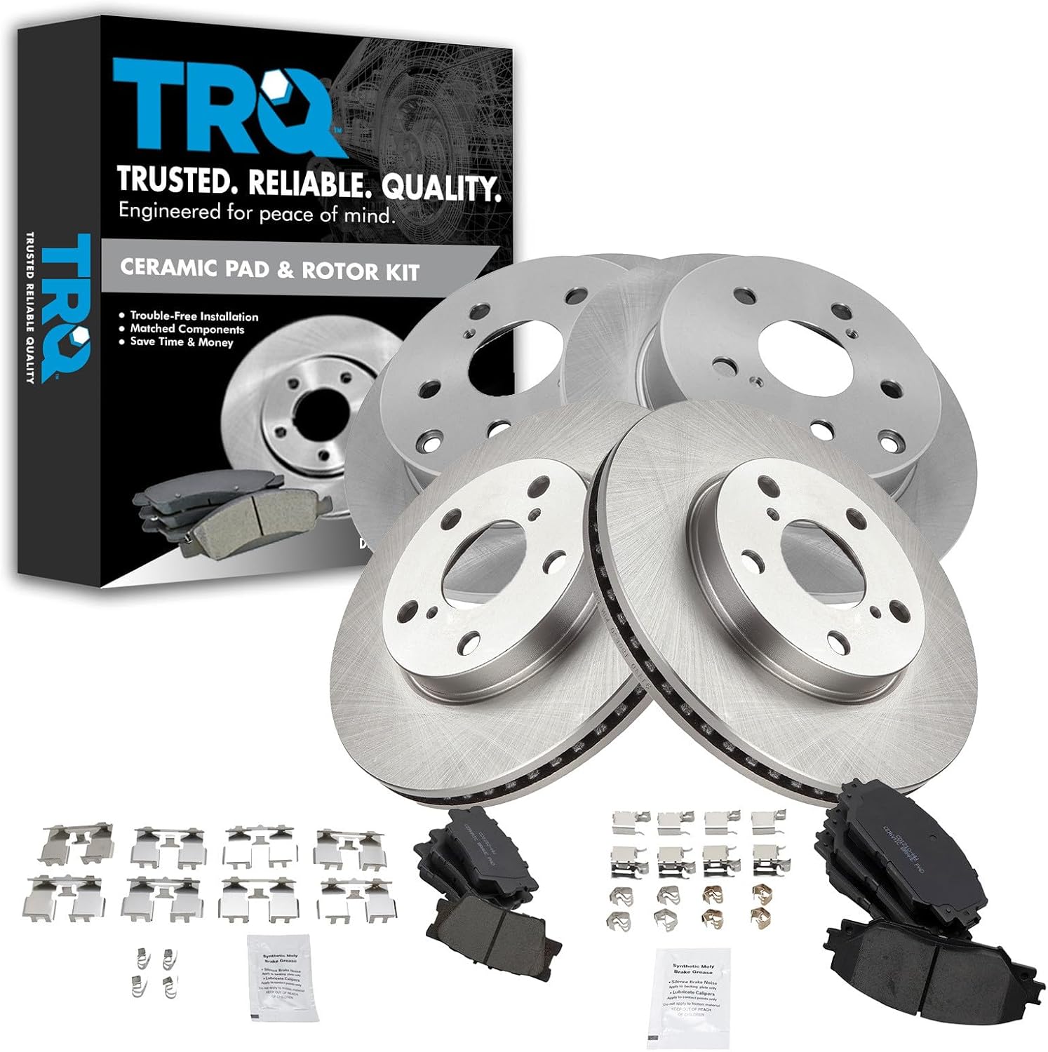 Ceramic Brake Pad & Rotor KitKit Includes(1) Front Ceramic Brake Pad Set(1) Rear Ceramic Brake Pad Set(2) Front Brake Rotors(2) Rear Brake Rotors9.25 in. (235mm) Front Brake Rotor Diameter9.09 in. (231mm) Rear Brake Rotor DiameterFitmentMazda Miata 1990-93 - Front & RearProduct AttributesFriction Material Composition: CeramicWheel Lug Count: 4 LugRear Brake Rotor Diameter: 9.09 in. (231mm)Front Brake Rotor Diameter: 9.25 in. (235mm)Brake Pad Friction Material: CeramicBrake Pad Bonding Type: Premium PosiRear Brake Rotor Venting Type: SolidFront Brake Rotor Venting Type: VentedProduct Features Positive Molded - Less dust resulting in clean wheels G3000 Casting Alloy - Reduced noise and improved wear resistance Application Specific Design - Extended service life, no modificationsItem DetailsTRQ brake kits are designed to restore your brake system to like-new performance. TRQ brake pads are positive molded, thermal scorched, chamfered, and utilize a multi-layer shim for enhanced performance and service life. TRQ rotors have a non-directional finish that reduces the break-in period for new rotors as well as reducing vibrations throughout the rotor’s lifecycle. All products are fit and road-tested in our Massachusetts R&D facility to ensure we deliver on our promise of Trusted Reliable Quality.Reference Numbers311003299894365981189701189219621396213FZN96213P96213R9621496214FZN96214P96214R97011892BD61986BD61998BR31100BR3299BWYH2643ZE0Y82643ZF1CZ2200AF2CZ2200AF3CZ2200BMGD458CHN0Y13323ZNAY02643ZNAY03323ZANAY12648ZPGD458CPGD468MPGD525MPRT1694PRT1717SGD458C