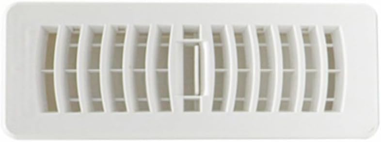 Product description FeaturesMade of and high grade plastic construction for long-term use.This central air conditioner floor register is For easy to install and clean.Air volume can be adjusted. Good ventilation with maximum exhaust .For indoor exhaust and noise reduction, bathroom vents and extractors, air conditioning units, kitchen fans and vents.It is in stable characteristics, high performance and it is in great reliability, simple, For easy to install.SpecificationsMaterial:PlasticColor: WhiteSize:3&For quot;x10&For quot;, 4&For quot;x10&For quot;, 4&For quot;x12&For quot;Package Contents1* floor vent coverNote:1. The real color of the item may be slightly different from the pictures shown on website caused by many factors such as brightness of your For monitor and light brightness.2. Please allow slight manual measurement deviation for the data. Manufacturer Contact Information Niceminiwall