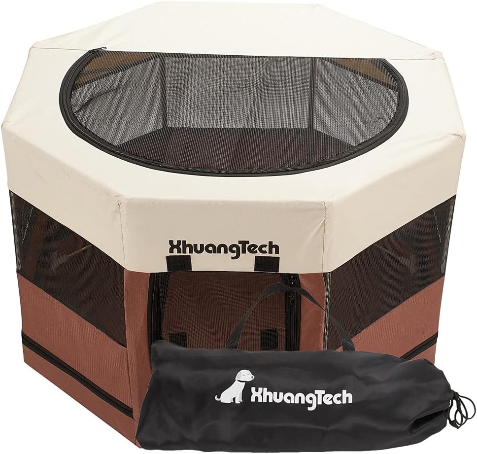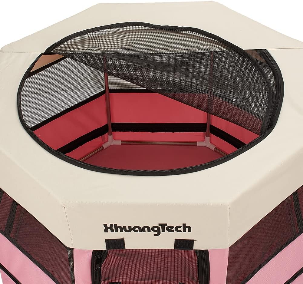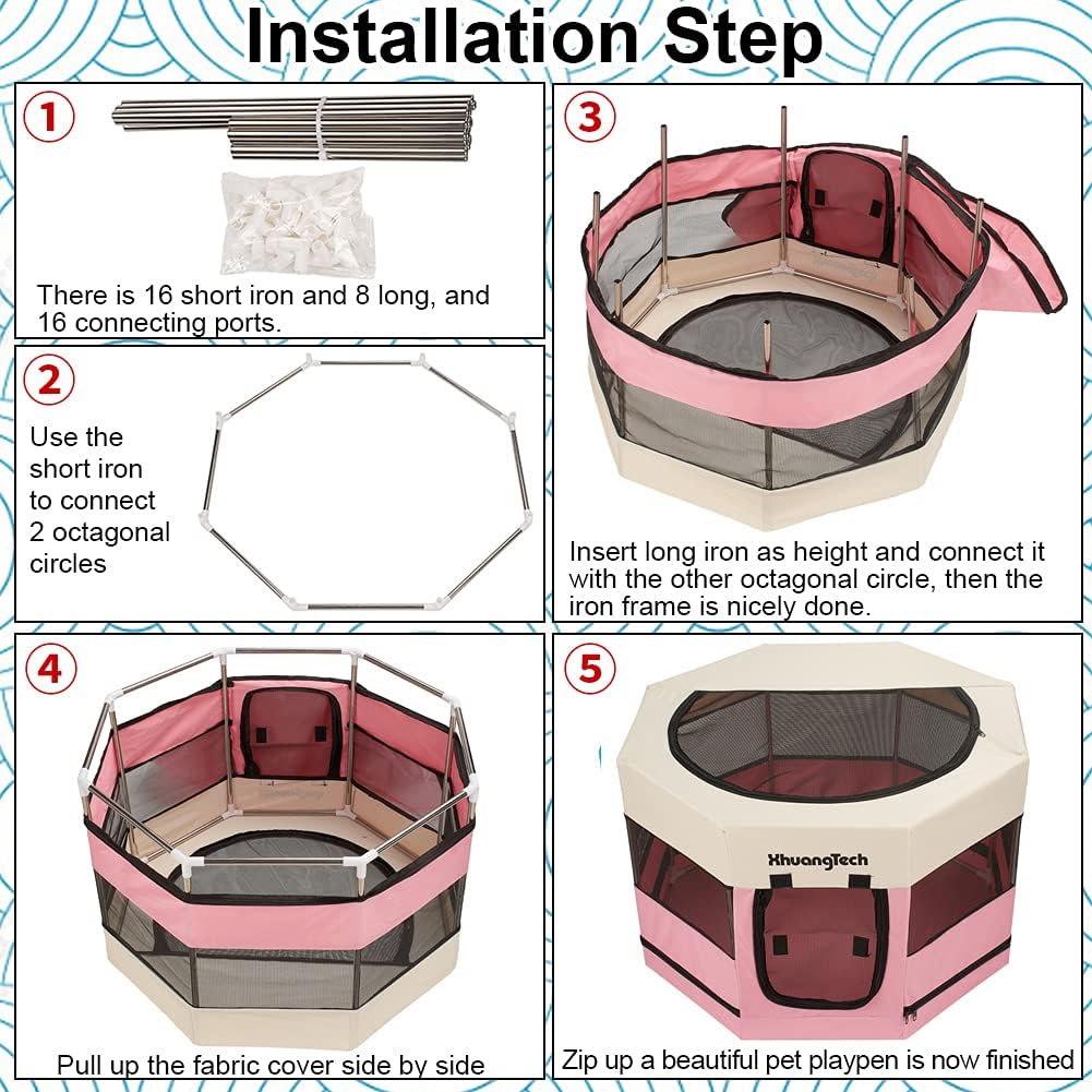 Features: 1.Foldable and lightweight: it's easy to install and fold, suitable for both home use and outdoor travel. 2.Comfortable and safe: made of waterproof oxford fabric and breathable mesh, it provides a comfortable and safe space for your pets. 3.Durable and strong: built-in steel tube support and sturdy fabric protects against bites and scratches. 4.Design: one door design and the whole cage is sealed except the top and one panel's zipper can be opened, it can prevent dog from drilling out door. 5.Practical: it can effectively against mosquitoes at summer and prevent cold in winter. Enclosed tents provide a safe, secluded space for your pets to play, rest or recuperate. Specification: Size: 74x74x45cm Color: Pink/Brwon/Blue/Grey Material: 600D Oxford cloth, Mesh, Iron Bracket: Flat steel wire Packing Includes: 1x Playpen