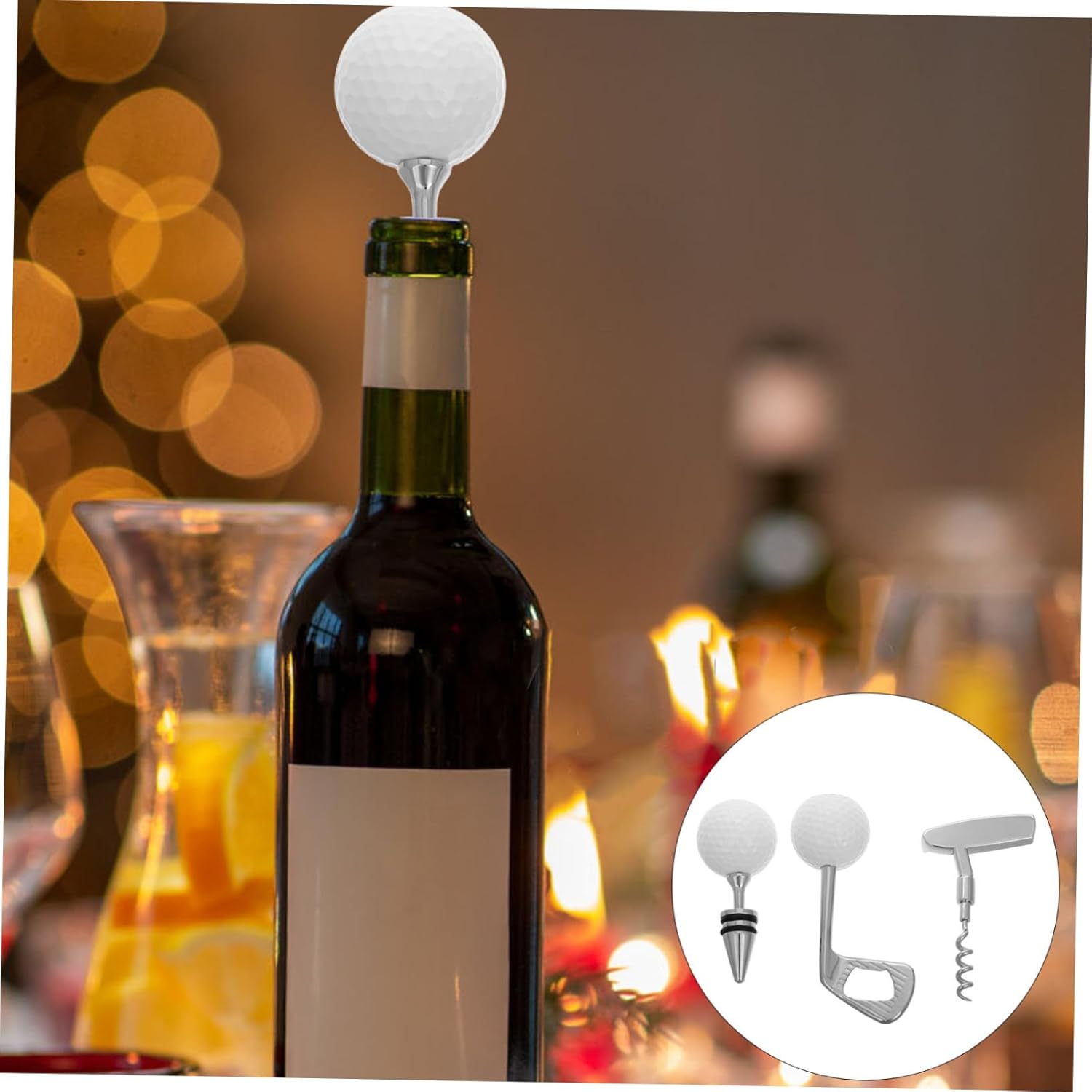 Package Include 1 x Corkscrew Bottle Opener 1 x Beer Bottle Opener 1 x Wine Features -Enhanced drinking experience: designed to enhance the enjoyment of wine or beer holiday supplies -Versatility: suitable for various wine bottle sizes, the stopper is practical and convenient handle corkscrew opener -Sturdy material: made from sturdy material, providing comfortable feel to your wine stopper bottle stoppers -Material: theme party bottle opener -Size:12.00X7.00X4.00 cm/4.72X2.75X1.57in(Beer Opener) metal beer soda beverage opener -Stylish: adds unique and sophisticated touch to your barware, making it a great conversation starter golf shaped bottles openers -Size:10.00X4.20X4.20 cm/3.93X1.65X1.65in(Stopper) wine bottle stoppers -Color:Silver golf bottle plugs -Size:11.00X6.20X2.50cm/4.32X2.44X0.98in(Corkscrew) manual wine bottle opener -Comprehensive: essential tools like a bottle opener, wine opener, and wine stopper bottle cap openerGoods Descriptionbottle opener golf Simply wipe down and stopper with a damp cloth after use to keep them looking well, making it a must-have for golf enthusiasts.wine bottle opener The Golf Theme Wine Bottle Opener is easy to use and maintain