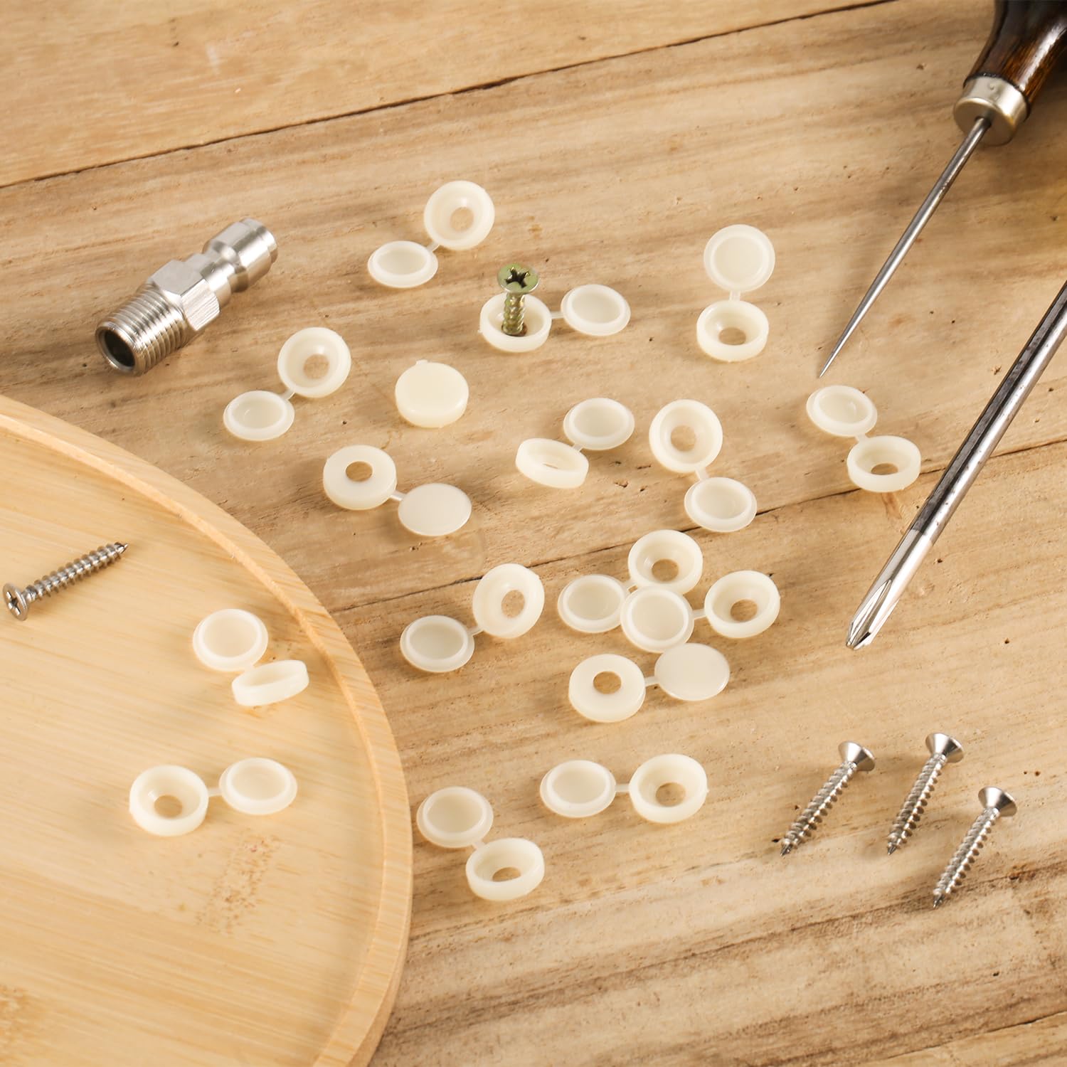 Specification: Color: as shown in the picture Material: plastic Product Size: Cover diameter: 13.5mm/0.53 inch, hole diameter: 5.3mm/0.21 inch Package details: 100 x screw covers caps Note: Due to manual measurement, the size and weight may have a certain error. Due to the difference between monitors, there may be a slight color difference.