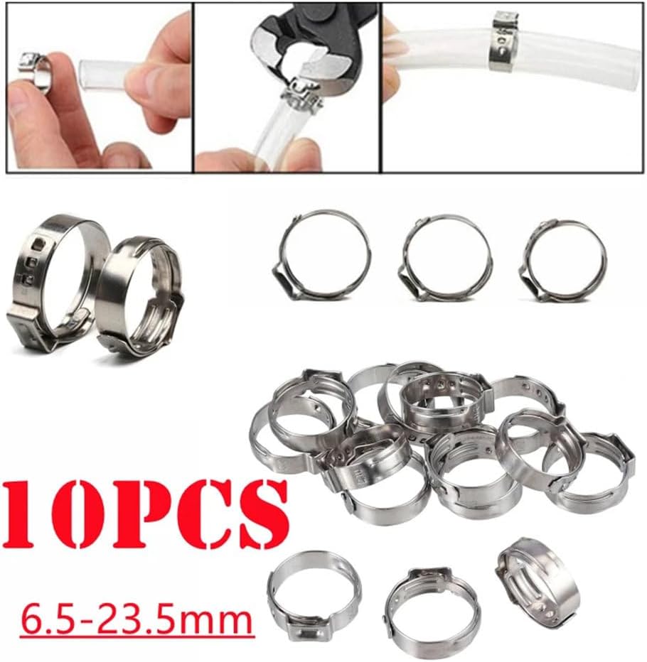 Material: Colour: Use: Quantity:10pcs Structure: Clamps DIY Supplies: Plumbing -304 Resists. - 360° uniform compression soft inner band - Suitable demanding applications where a lighter, thin-walled hose is used. Package:10 x Clamp Notes: 1. Due to manual measurement, please allow 0.1-0.3mm error. 2. Due to different computer colors, the actual color of the product may be slightly different from the picture, thanks for your understanding.