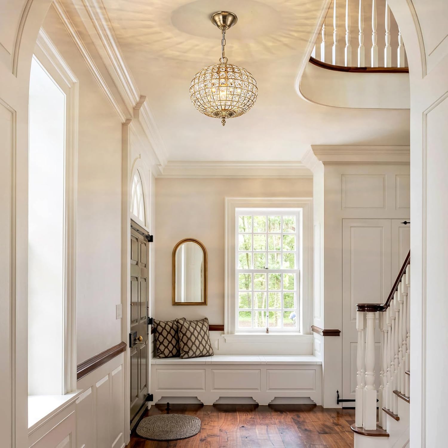 Bring a touch of timeless elegance and sparkle to your home with this crystal globe chandelier. Crafted with a gold brass frame and wrapped in clear octagon crystals, the fixture creates a dazzling play of light and shadow that transforms any space. Especially stunning in a narrow entryway or hallway, it casts beautiful reflections across the ceiling, leaving guests impressed and full of compliments. With its adjustable 78" chain and versatile size, this globe chandelier is equally perfect for dining room, bedroom, entryway, hallway and kitchen islands—adding a sophisticated glow wherever it’s placed.