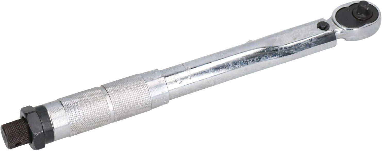 Ideal for professional or occasional use. Manufactured from chrome vanadium steel for strength and durability. Every bolt on a modern vehicle has a torque setting, and a torque wrench is essential to accurately judge how tight a bolt is. Smooth action mechanism providing accurate torque settings every time. Marked in Newton Metres on the Torque Wrench itself, this covers the range 5-25Nm (equivilent to 4-18ft-lbs) Fully adjustable torque wrench with ratchet head which when set ensures proper tension and loading settings are applied to nuts and bolts. 1/4" drive. Will fit all 1/4" drive sockets (so ideal for small vehicles / bikes etc... When the required torque setting is reached the wrench produces an audible click and a slight release of tension. Clockwise torque only but can also be used to undo by the switch of a lever on the ratchet head. Total length of the tool 280mm Specifications; 1/4" drive torque wrench Lockable grip for accurate results Accuracy + / 4% 5 25 nm / 4 18 Ft./lbs torque range (fully adjustable) Supplied in a blow molded case for easy storage and transportation.