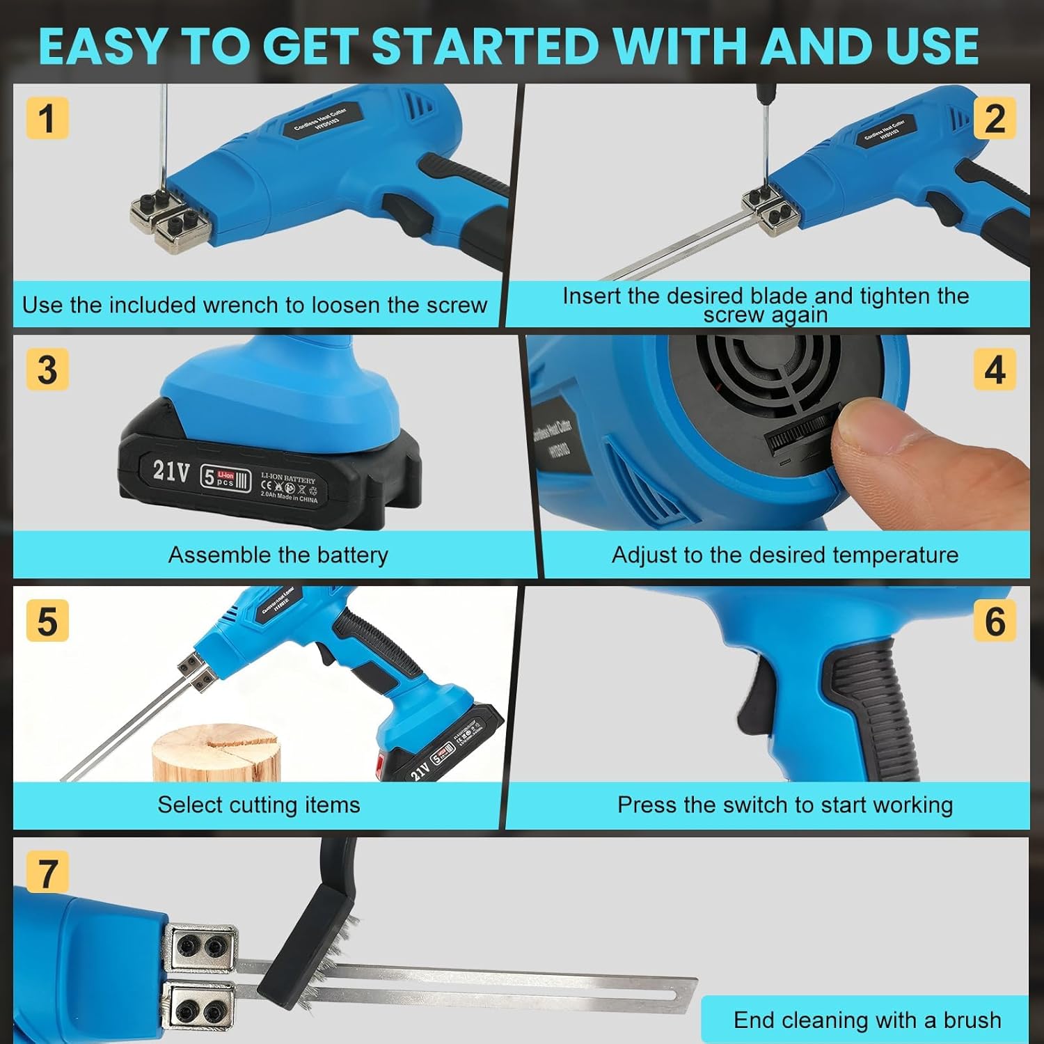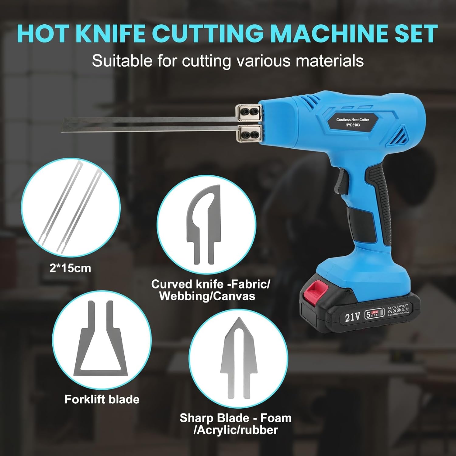 Why Choose Our Cordless Foam Cutter?A professional-grade foam cutting solution combining wireless convenience with multi-blade precision.Key Features:Wireless Cutting Convenience Dual 2000mAh lithium batteries for cordless operationMulti-Blade Precision System Includes four specialized cutting bladesProfessional-Quality Results Produces clean, sealed foam edgesInstant Readiness Technology Heats up in 10-15 seconds with adjustable temperatureErgonomic Portable Design Lightweight yet powerful performanceWhy It's Essential:Enables unrestricted movement during cuttingProvides versatile cutting solutions for various projectsEnsures professional finish regardless of foam typeAllows immediate use with customized heat settingsOffers comfortable handling for prolonged useIdeal for DIY enthusiasts and professionals requiring precision foam cutting capabilities for crafting or fabrication projects.