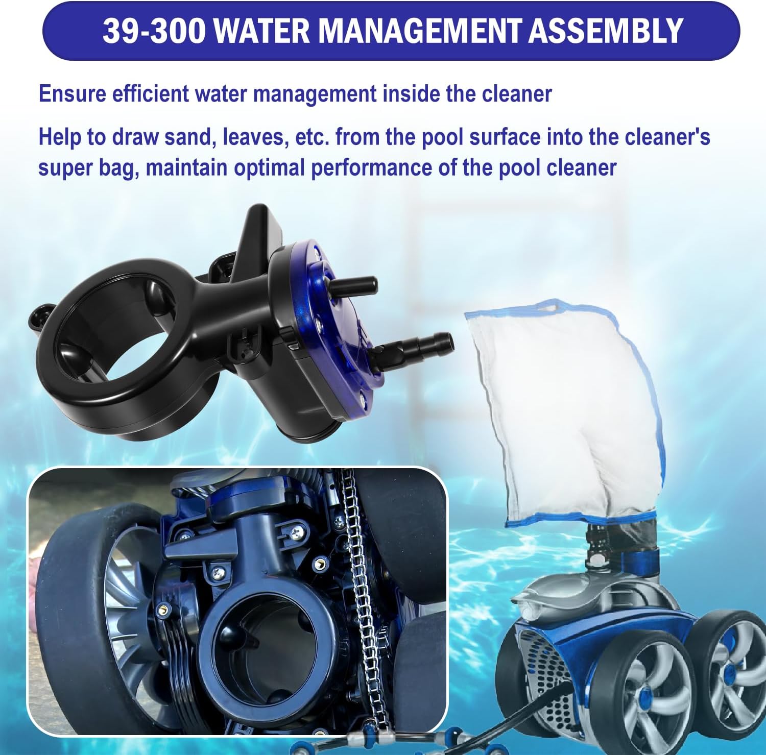 The 39-300 WMS assembly replacement part is compatible with Zodiac Polaris 3900 Sport and P39 robotic swimming pool cleaners models. The 39-300 water management assembly rebuilds your 3900 Sport pool cleaner performance.