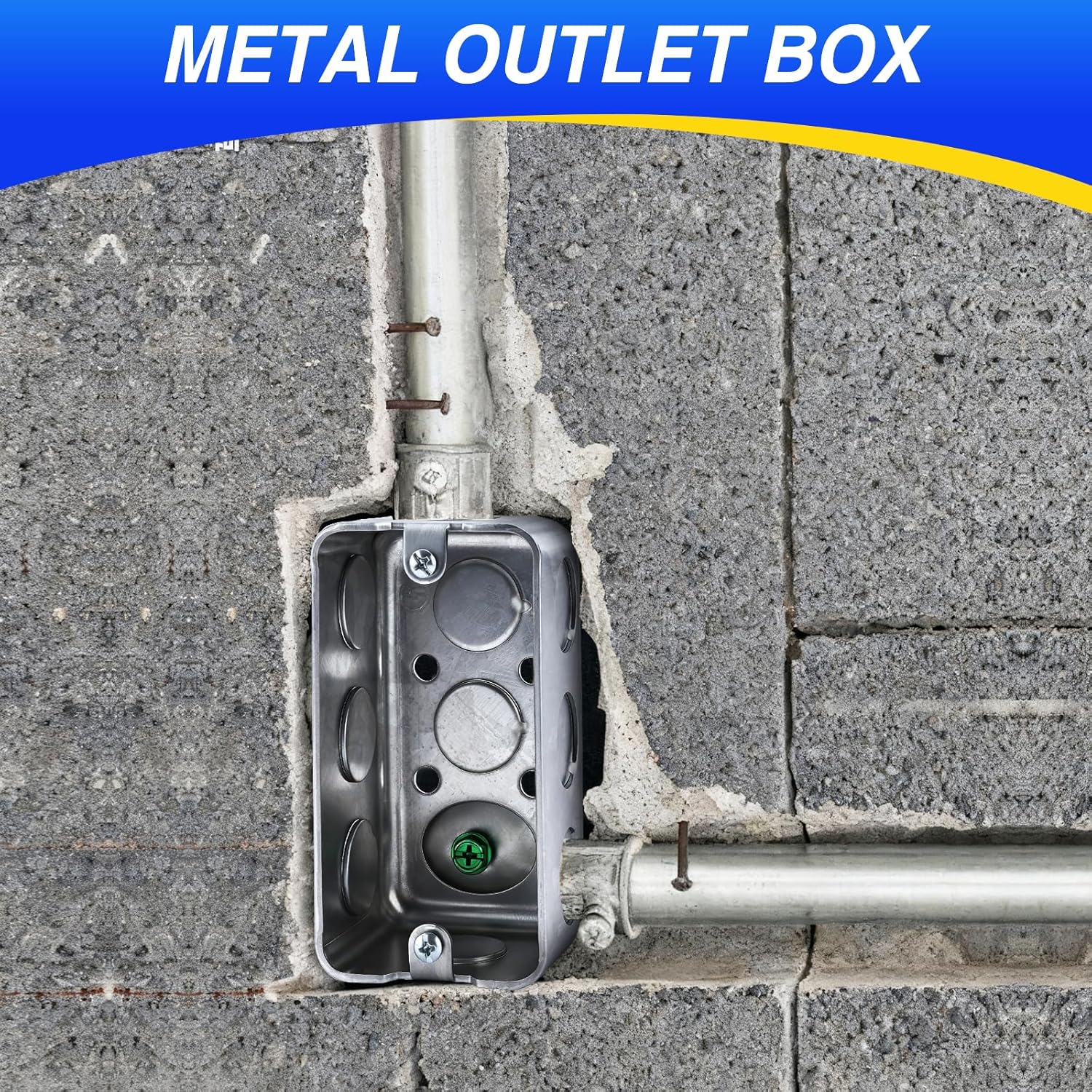 Key Features12-pack metal electrical boxes (4" x 2") with 12 duplex covers13.0 cu. in. capacity per boxGalvanized steel construction: rust-resistant and durable10 removable 1/2" knockouts for flexible wiringStandard size: 4" x 2" x 1-7/8" deepFits conduits and cables of all sizesIdeal for renovations and commercial projectsUL certified for safetyAlways measure before ordering
