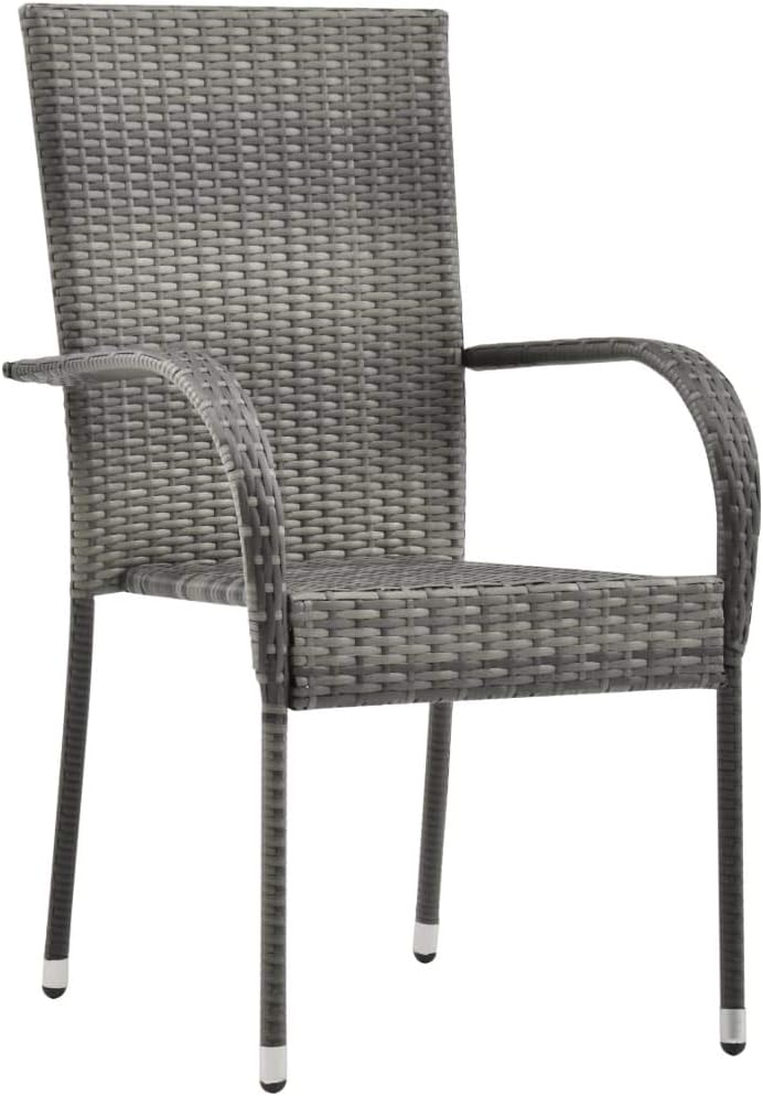 Create a compelling and cohesive aesthetic in your patio space with this patio dining set!The dining table is made of solid acacia wood and durable steel, making it sturdy and stable. The oil-finished surface also makes it suitable for outdoor use. Featuring a steel frame covered with weather-resistant PE rattan, the dining chairs are sturdy and easy to clean. These patio chairs can be stacked to save space when not in use.Note: In order to extend the life of your outdoor furniture, we recommend you to clean it regularly and do not leave it outdoors without protection unnecessarily.Clean: Use a mild soap solution.Storing: If possible, store in a cool, dry place indoors. If the product is stored outdoors, protect it with a waterproof cover. Wipe and dry the excess water or snow from flat surfaces after a rain or snowfall. Allow sufficient air circulation to avoid moisture-related damage.Table:Material: Solid acacia wood with an oil finish, powder-coated steelDimensions: 59.1" x 35.4" x 28.3" (L x W x H)Chair:Color: GrayMaterial: PE rattan, powder-coated steelDimensions: 21.9" x 21.1" x 37.4" (W x D x H)Seat size: 13.4" x 16.9" (W x D)Seat height from the ground: 17.3"Armrest height from the ground: 25.2"Assembly required: YesDelivery contains:1 x Table4 x Chair