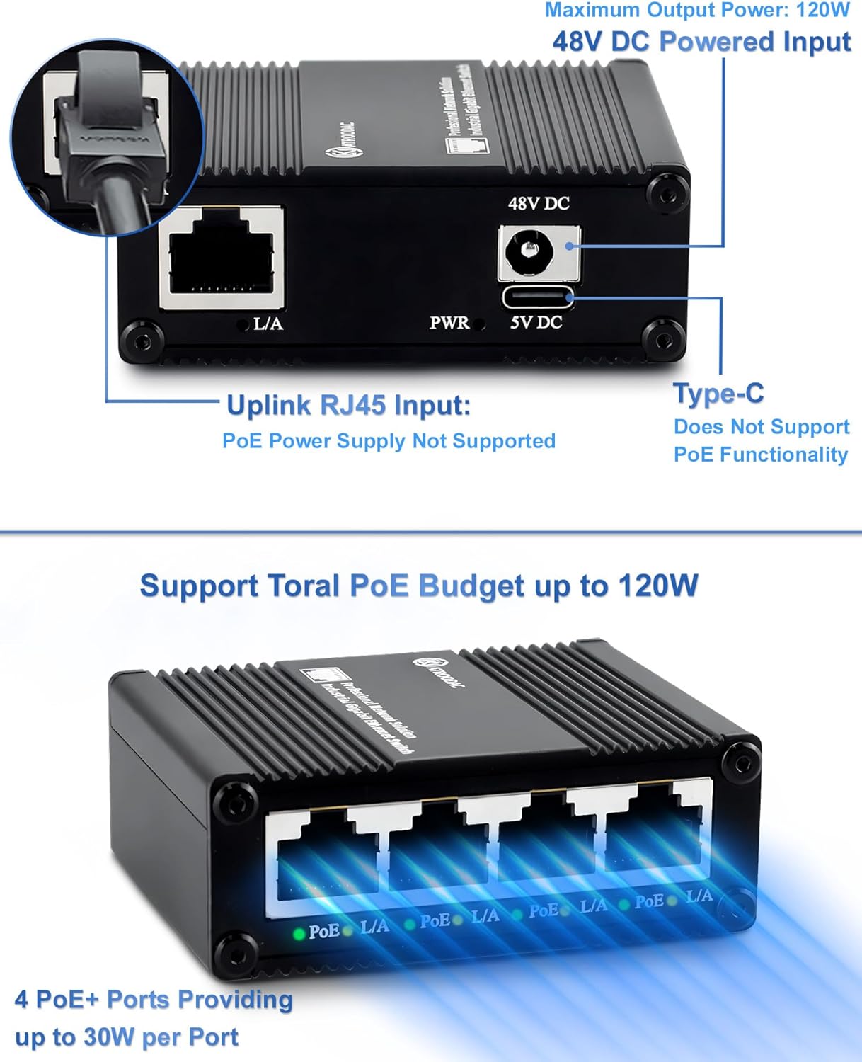 | Model Number | 5-Ports | 4 Ports PoE+,120W |