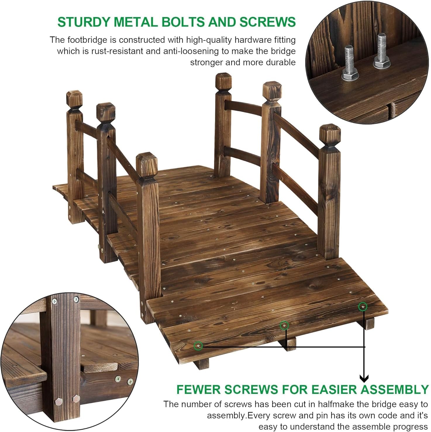 Package Includes: 1 x Carbon Colored Wooden Bridge 1 x Hardware Assembly Accessories 1 x Specification