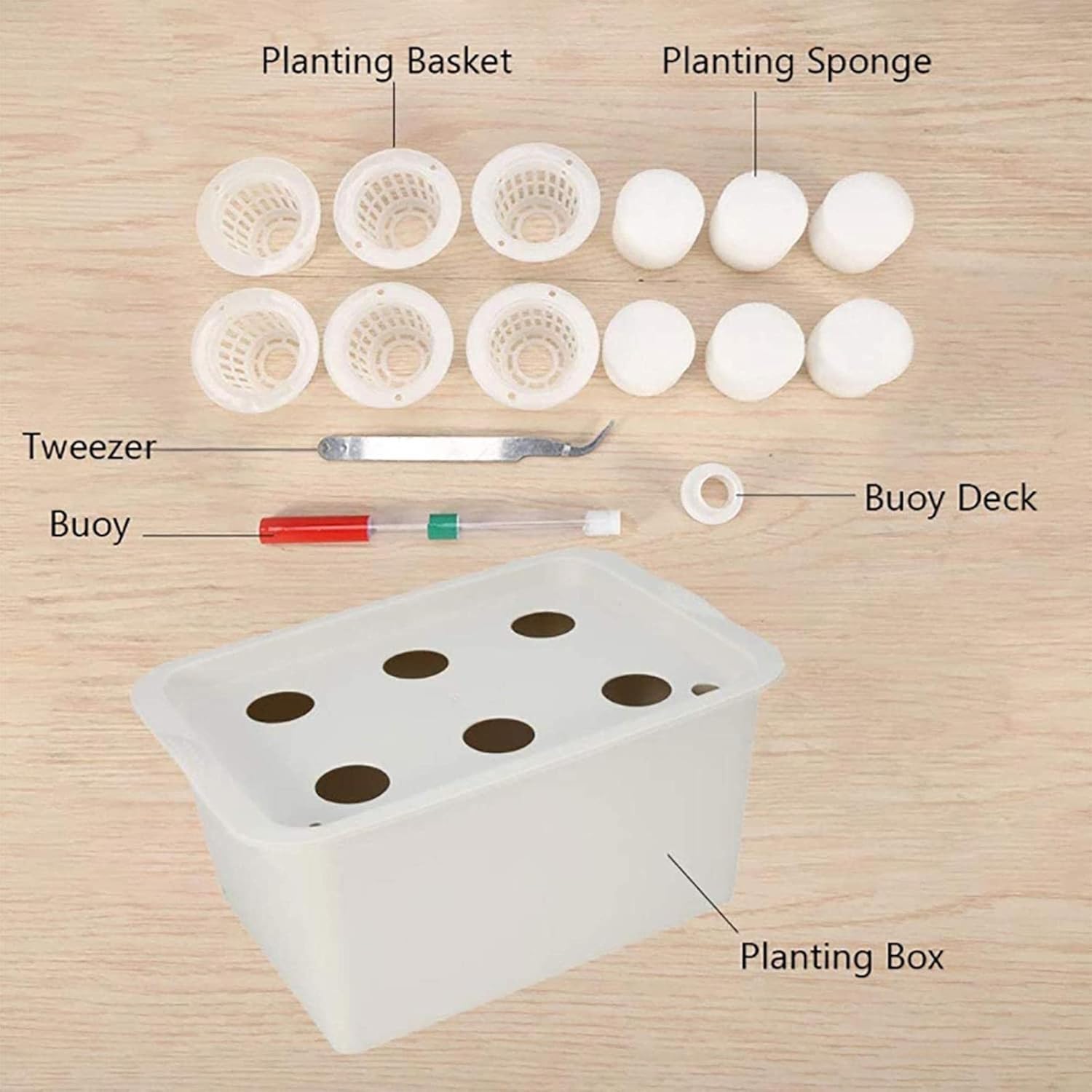 Features: Made of high quality plastic material,it is sturdy and durable to use. Designed for planting flowers and vegetables etc. Reusable,simple and easy to use. 6 holes provides plants with highly oxygenated and nutrient enriched water directly to the root zone increg plant growth. Automatic irrigation,sterile non-pest,very convenient and healthy. Specifications: Material: PP Air Pump Power: 2.5W Air Pump Pressure: 0.018mPa Planting Hole Diameter: 3.2cm Air Pump Cable Length: 75cm Size: 280x193x140mm Color: gray Package included: 1x Hydroponic Box With 6-Site Lid 6 x Net Cups 6 x Sponge 1 x Air Pump 1 x Tube Kit 1 x Tweezers 1 x Buoy Notes: 1.Due to the difference between different monitors,the picture may not reflect the actual color of the item. We guarantee the style is the same as shown in the pictures. 2.Due to the manual measurement and different measurement methods, please allow 1-3cm deviation.Thanks!