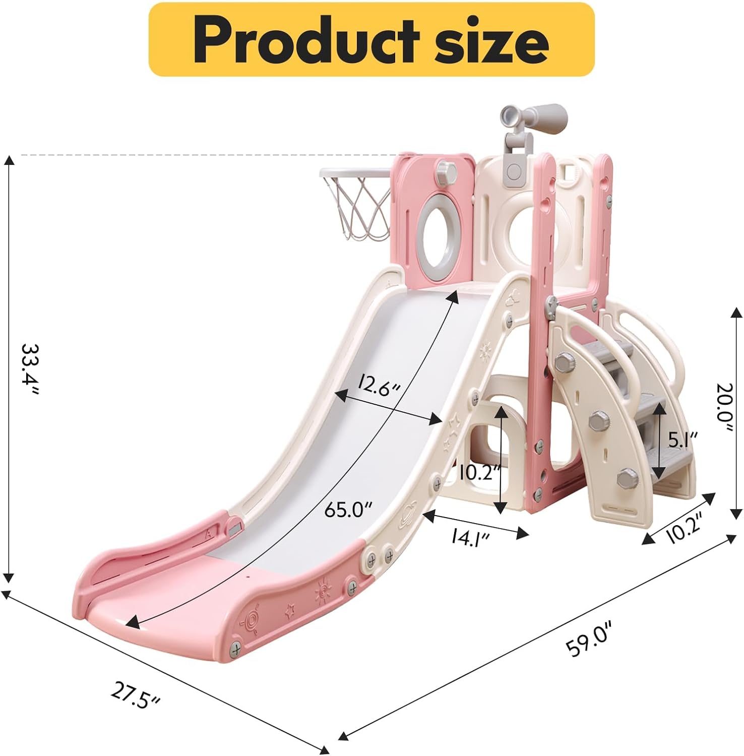 6 in 1 Toddler Playset with Slide, Kids Slide with Basketball Hoop, Ball, Ring Toss, Indoor Outdoor Toys
