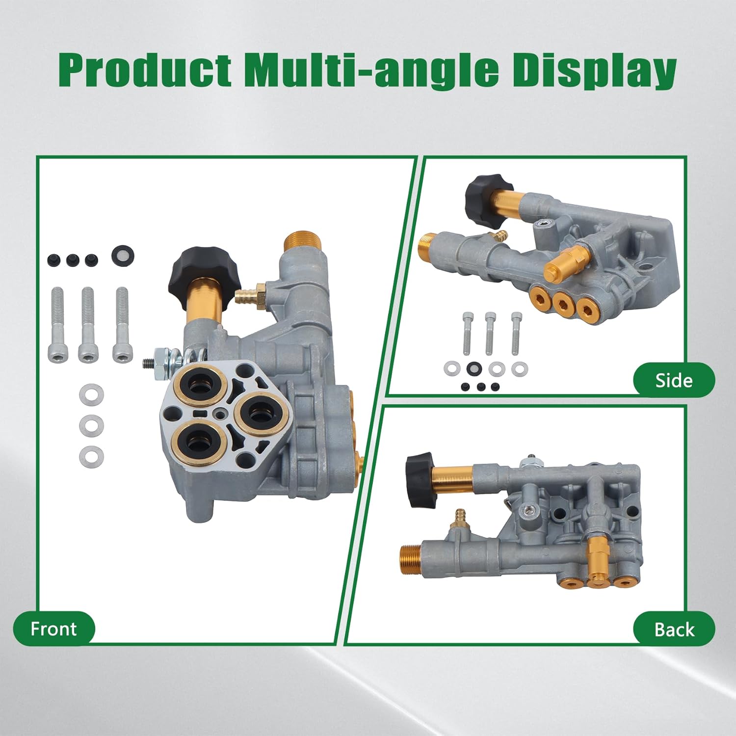 Where used:Replacement for with this model of axial cam pressure washer pump: 510020 and 520006.Advantages:1.Powerful performance, 108366 pressure wash pump has high pressure output, efficient cleaning performance and greatly reduced cleaning time.2. Made of durable metal, it can work for a long time and keep stable operation.3. Simple to use, no need for professional tools or complex skills to complete the installation.This kit includes: 1pcs 7108366 Pressure Washer Pump, includes mounting screws as shown.Tips: Please check your parts with our pictures and part number, so as to make sure this part suit your models before you purchase.