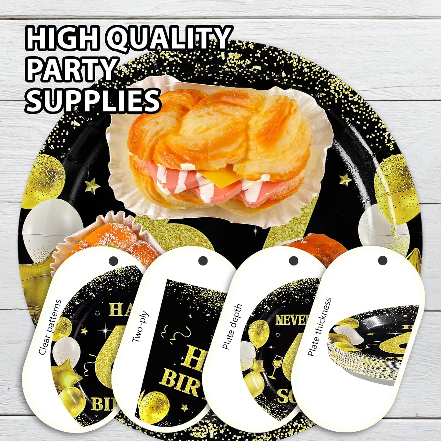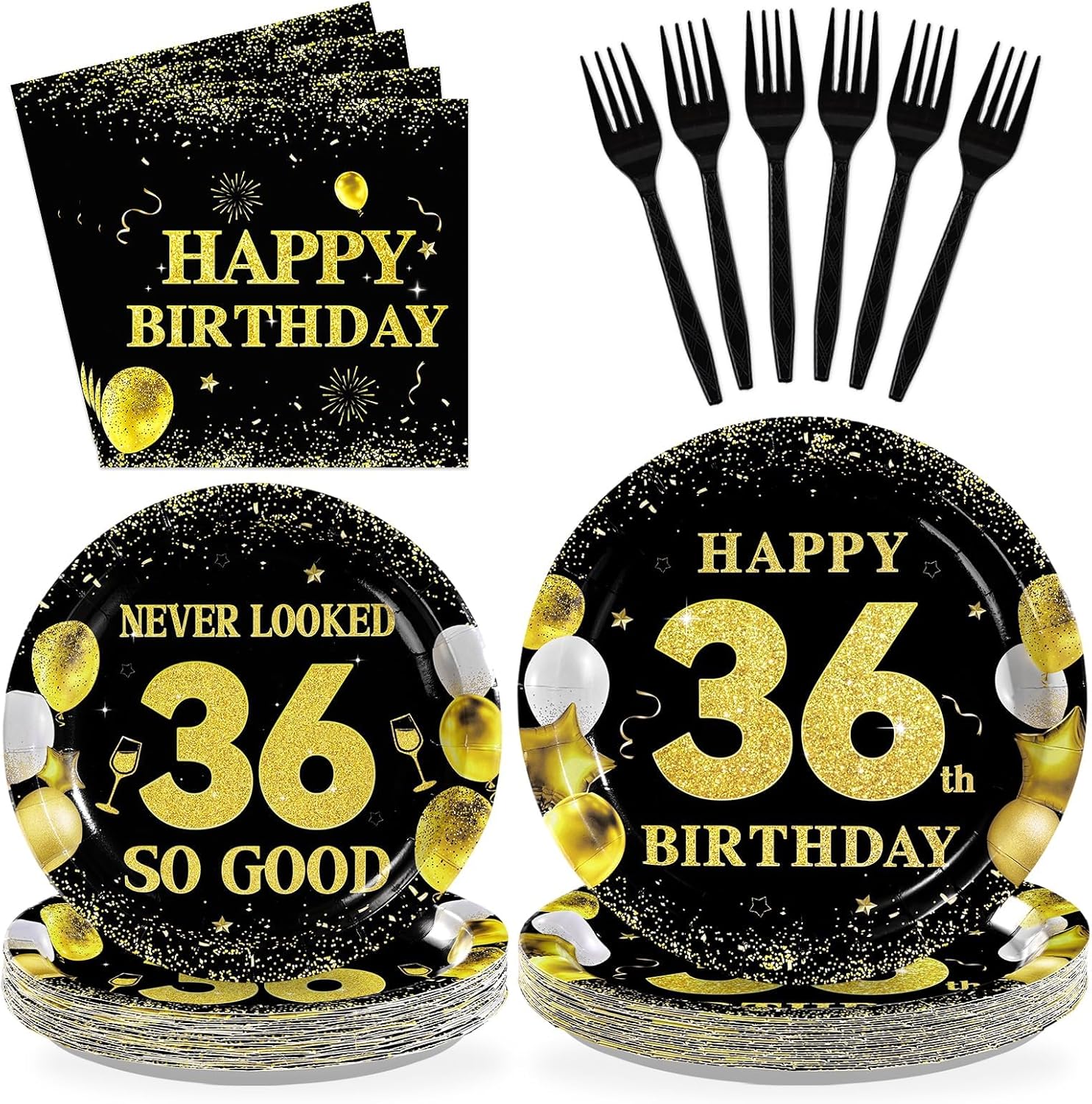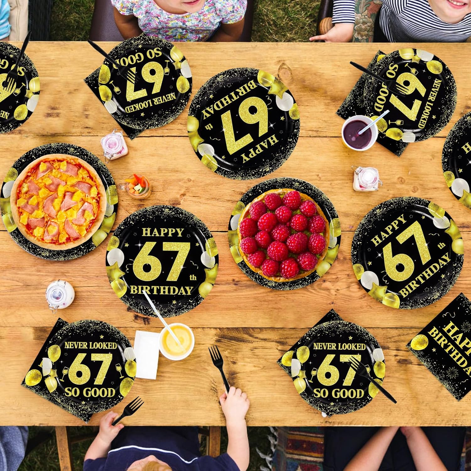 Greencian 96Pcs 67th Birthday Party Supplies Black and Gold Plates and Napkins Happy 67th Birthday Tableware Set for Men Women Cheers to 67 Years Party Supplies Serves 24