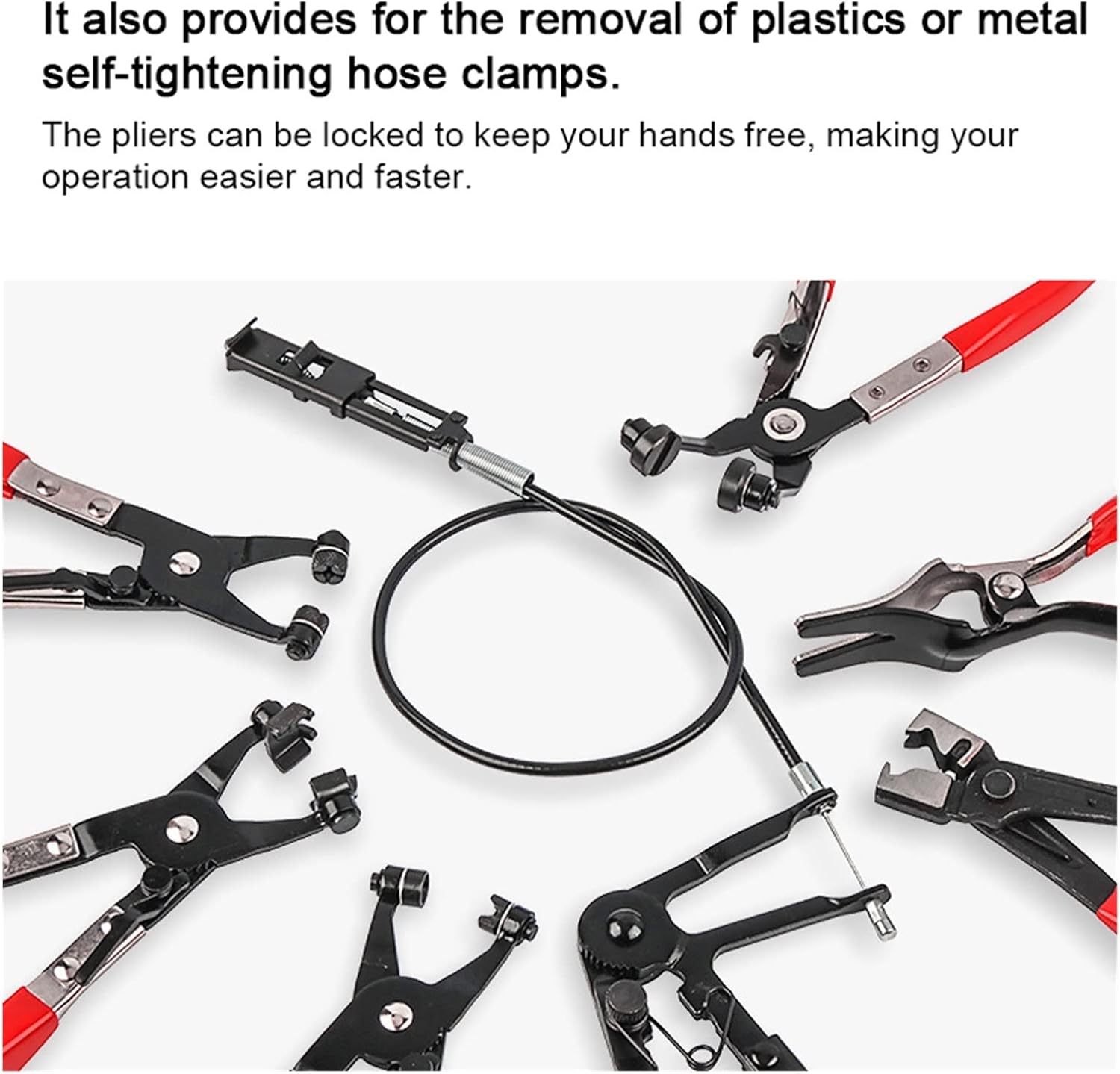Specifications:Main color: red+blackMain material: metalType A pliers:length: 210mm / 8.3inhose length: 640mm / 25.2inhandle length: 140mm / 5.5inopening: max. 50mm / 2.0inweight: 440g / 1.0lbType B pliers:length: 215mm / 8.5injaw: 40mm / 1.6inhandle length: 130mm / 5.1inopening: max. 70mm / 2.8inweight: 200g / 7.1ounceType C pliers:length: 215mm / 8.5injaw: 40mm / 1.6inhandle length: 130mm / 5.1inopening: max. 70mm / 2.8inweight: 200g / 7.1ounceType D pliers:length: 235mm / 9.3injaw: 60mm / 2.4inhandle length: 135mm / 5.3inopening: max. 70mm / 2.8inweight: 210g / 7.4ounceType E pliers:length: 220mm / 8.7injaw: 45mm / 1.8inhandle length: 130mm / 5.1inopening: max. 65mm / 2.6inweight: 240g / 8.5ounceType F pliers:length: 175mm / 6.9injaw: 25mm / 1.0inhandle length: 95mm / 3.7inopening: max. 35mm / 1.4inweight: 220g / 7.8ounceType G pliers:length: 200mm / 7.9injaw: 65mm / 2.6inhandle length: 95mm / 3.7inopening: max. 42mm / 1.7inweight: 210g / 7.4ounceScrewdriver:length: 185mm / 7.3inhandle length: 95mm / 3.7inHose remover:length: 195mm / 7.7inhandle length: 90mm / 3.5inPackage size: 480 * 270 * 90mm / 18.9 * 10.7 * 3.5inPackage weight: 3370g / 7.4lbList:7 * Pliers1 * Screwdriver1 * Hose Remover1 * Storage BoxHello, welcome to my shop, which specializes in auto parts. Please contact me in time if you have any questions. Thank you very much for choosing my product.
