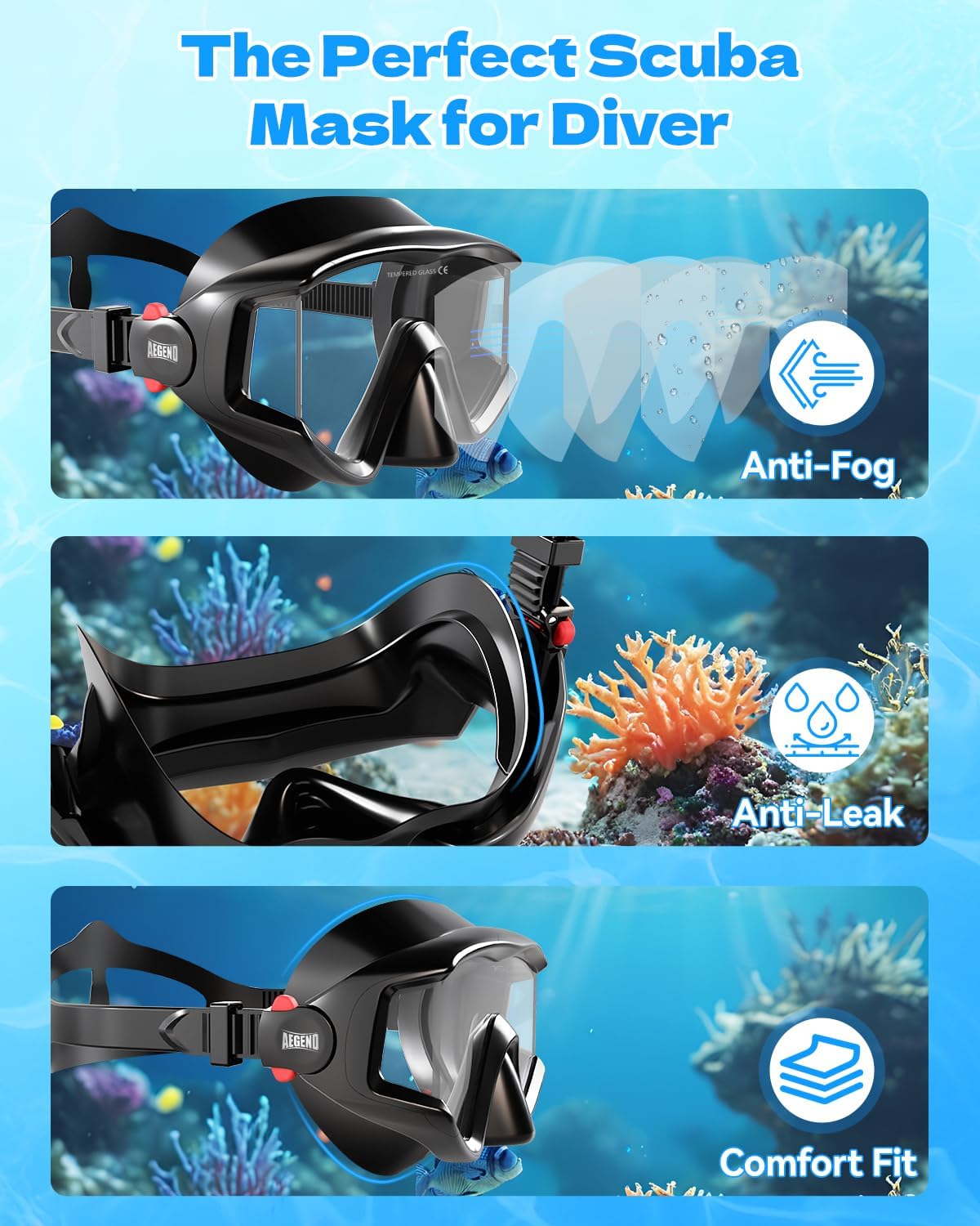 Aegend Snorkel Diving Mask for Adult Men Women – Diving Goggles Anti-Fog Tempered Glass Lens | for Adult Snorkeling, Swimming & Diving Gear