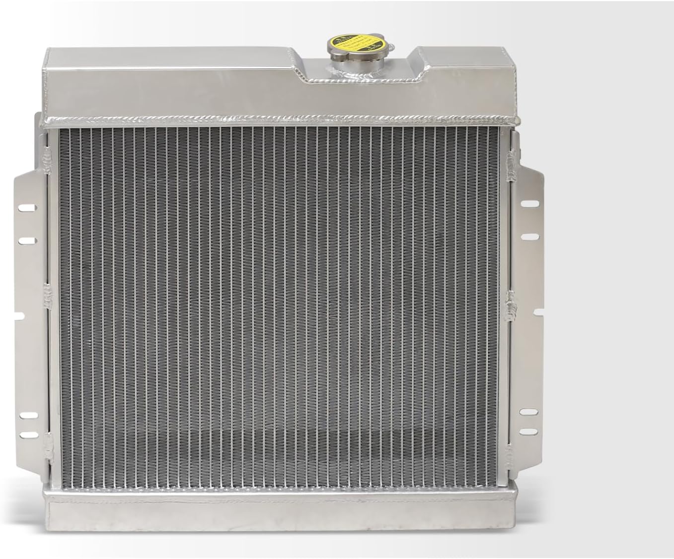 100% brand new items, never used or installed.Tri-core 3-row full aluminum radiator.Made by OEM approved manufacturers with materials that meets or exceeds strict OEM requirements.Manufactured from high quality T-6061 billet aluminum construction with precision TIG-welded end tanks for superior strength and durability.Increases engine cooling efficiency by 35-45% heat radiation, reducing possibility of overheating.Raises coolant capacity and significantly improves heat exchange when compared to factory stock units.Measurements (Estimated): Overall Size: 21.25" x 18.25" x 2.5"Core Size:17.0" x 16.5"Inlet/Outlet: 1.5" / 1.75"No installation guides are included, we highly recommend seeking professional installation.Compatible/Replacement for:1964-1966 Mustang (Manual Transmission Only)1963-1965 Falcon (Manual Transmission Only)1963-1965 Comet (Manual Transmission Only)Fits manual transmission models only.
