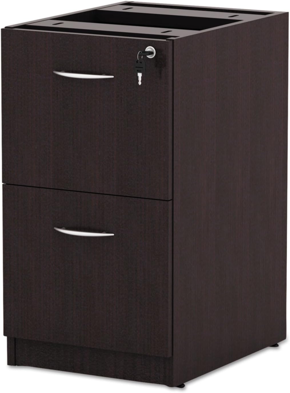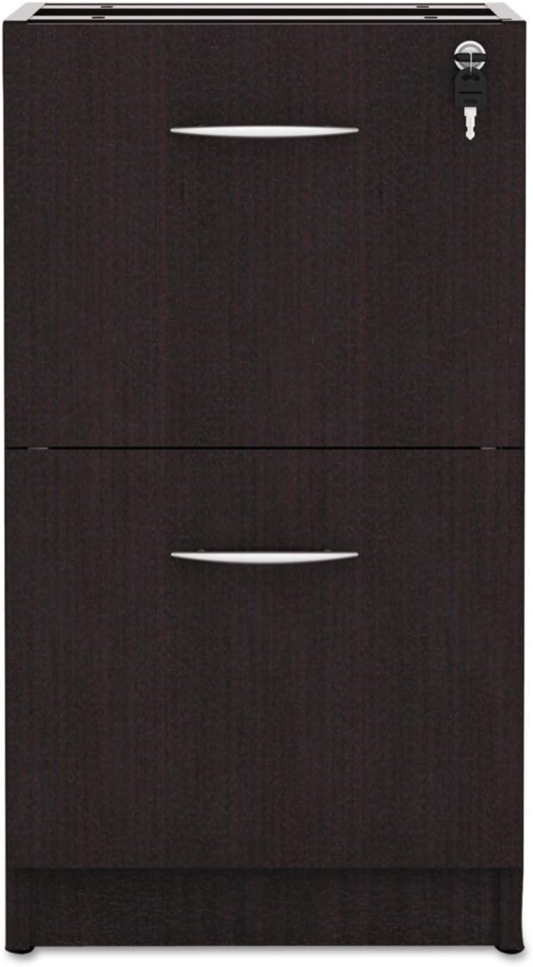 Freestanding pedestal file cabinet that attaches under worksurface. Sturdy, four-sided drawer construction with separate front panel. Full-extension ball bearing slides on file drawer for easy access to files. Drawers lock for securing contents. Durable 3 mm edge banding protects against bumps and dings. Two, fold-away safety keys for a slimmer profile are included.