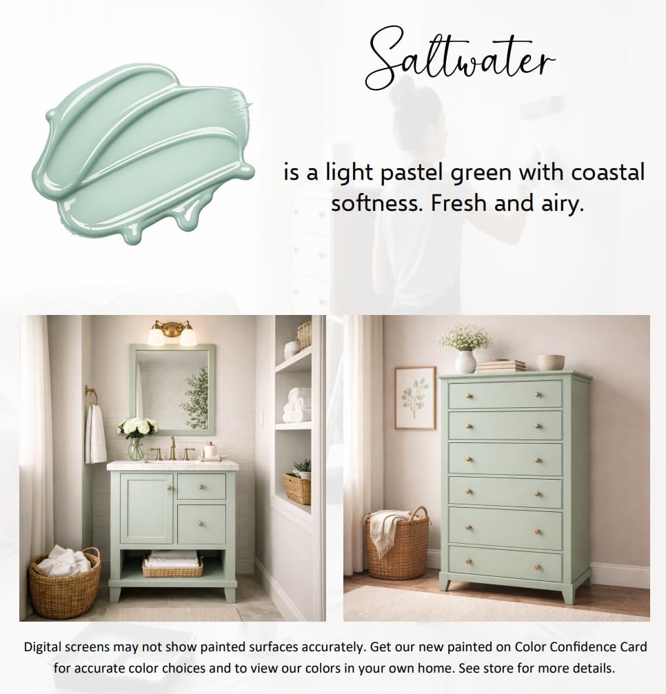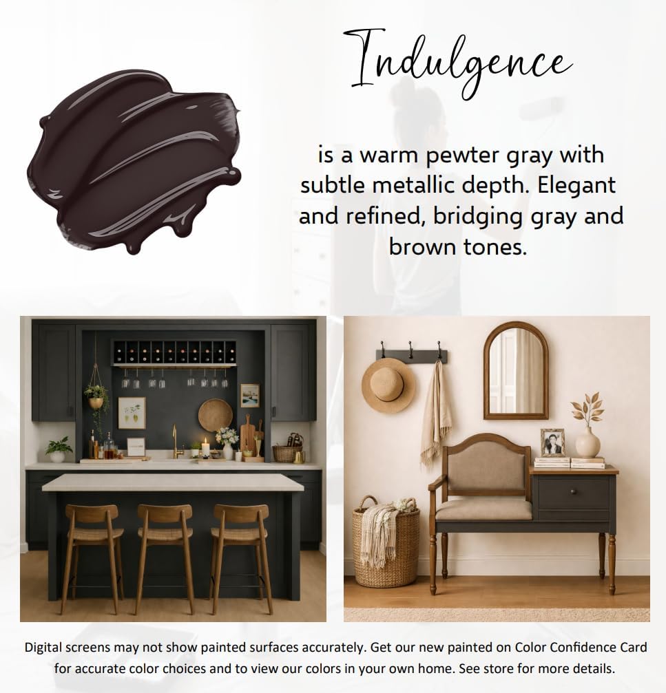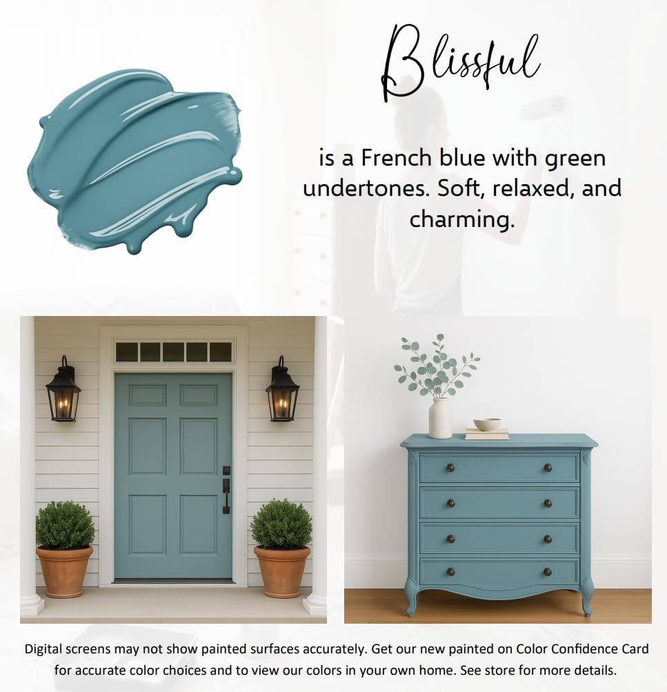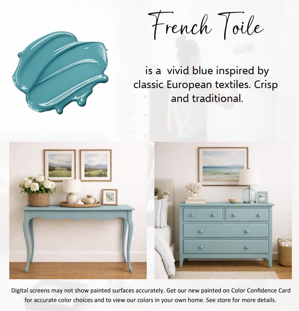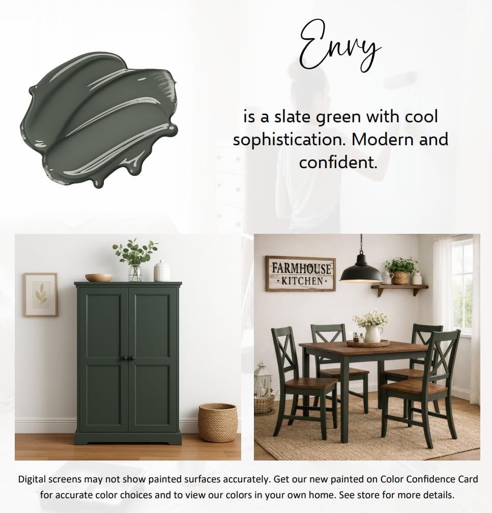It's AMAZING what a little paint can do. With ALL-IN-ONE Paint by Heirloom Traditions, it's as easy as Just Clean and Paint! Transform everything inside and outside of your home with one easy to use product. Ideal for hard wearing surfaces like cabinets, table tops, front doors and more. We've also added a stretch factor to this amazing paint that allows you to paint leather, vinyl and smooth fabrics with ease. * No Sanding * No Stripping * No Sealing * No Priming * Low Luster Matte Sheen, Smooth Finish. Most surfaces require 2 coats (light colors over dark may require additional coats). Paints most surfaces including wood, laminate/formica, leather/vinyl, smooth fabrics, brick, ceramic, stone, glass, plastic, metal, fiberglass and more. You can also paint over existing coatings such as varnish, polyurethane, latex paints and acrylic/chalk/oil based/water based paints. That means you can easily paint all types of cabinets, countertops, appliances, backsplash/wall tile, fireplace mantle/surround, all types of front doors/screen doors, shutters, garage doors, furniture, patio furniture, sofas and more! Search for "ALL-IN-ONE PAINT by Heirloom Traditions, Color Confidence Card" to get our newest true color, painted on swatch card before choosing your color. Recommended tools: Use our Tool Trio to get professional results! Monitors/digital screens may not show color accurately.